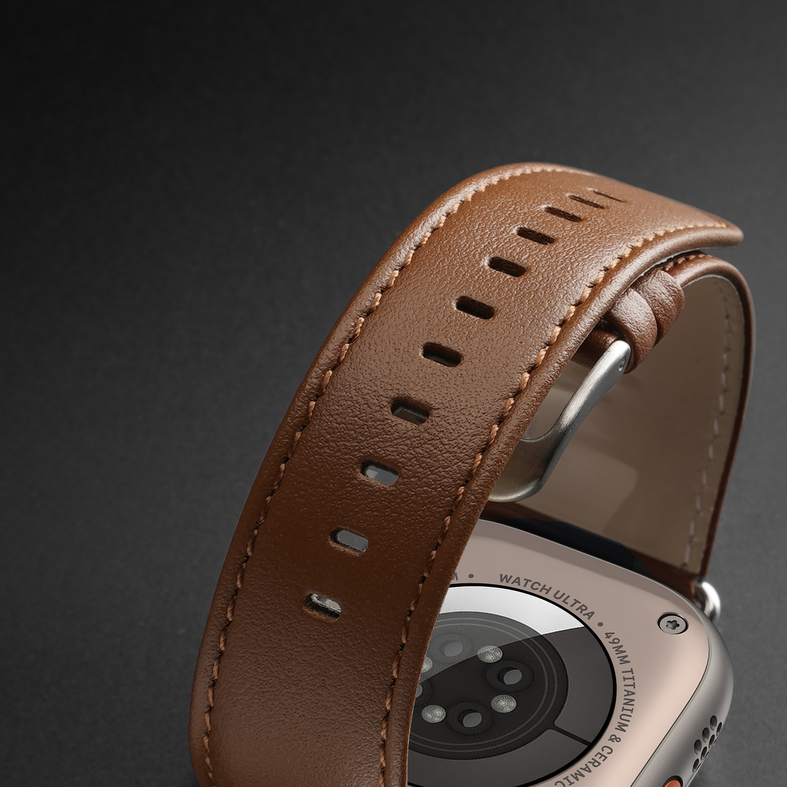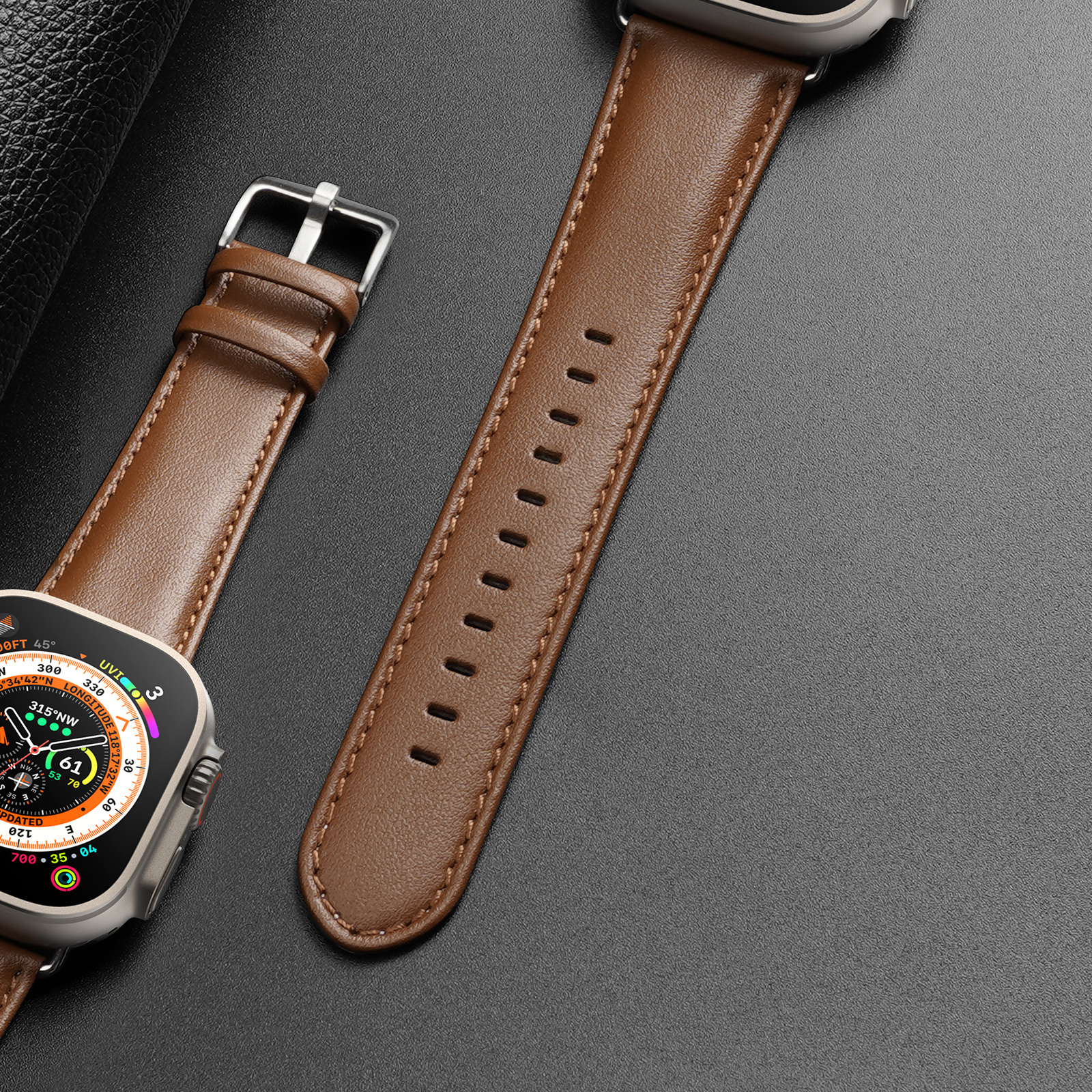 Ремешок из верхнего слоя коровьей кожи коричневого цвета от Dux Ducis для смарт часов Apple Watch 42, 44, 45, 46, 49мм, серия YS Series
