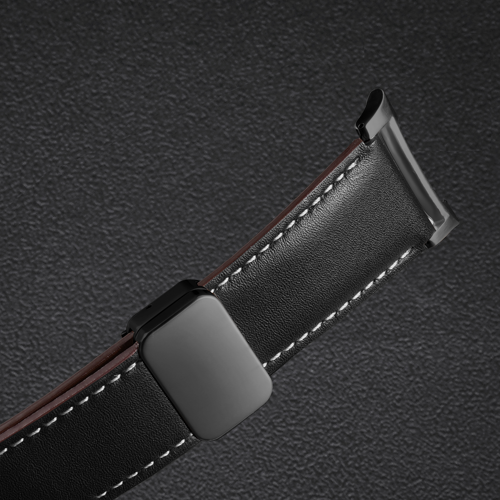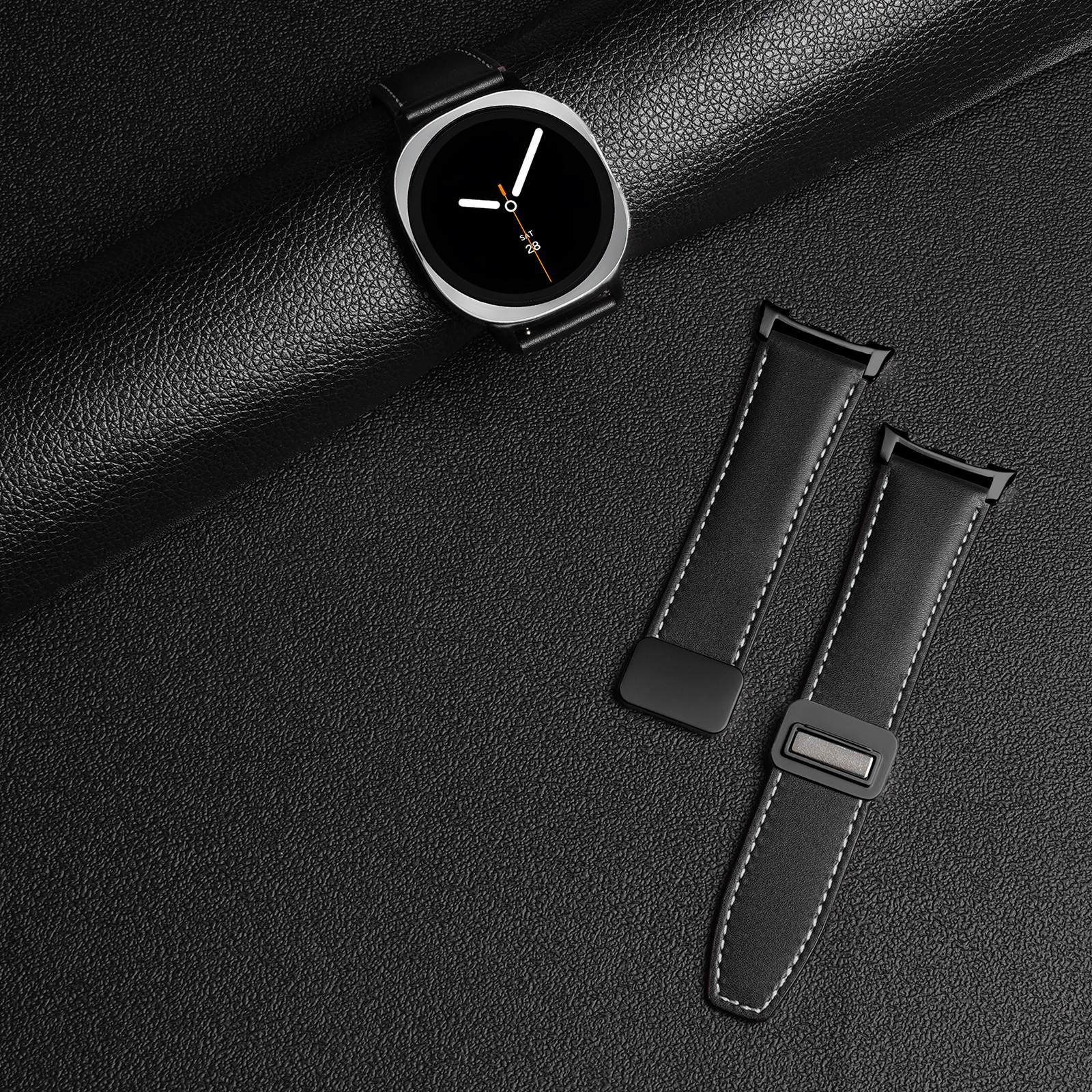 Ремешок из натуральной телячьей кожи черного цвета от Dux Ducis для смарт часов Samsung Galaxy Watch 8 (40 и 44мм), серия YA Series.