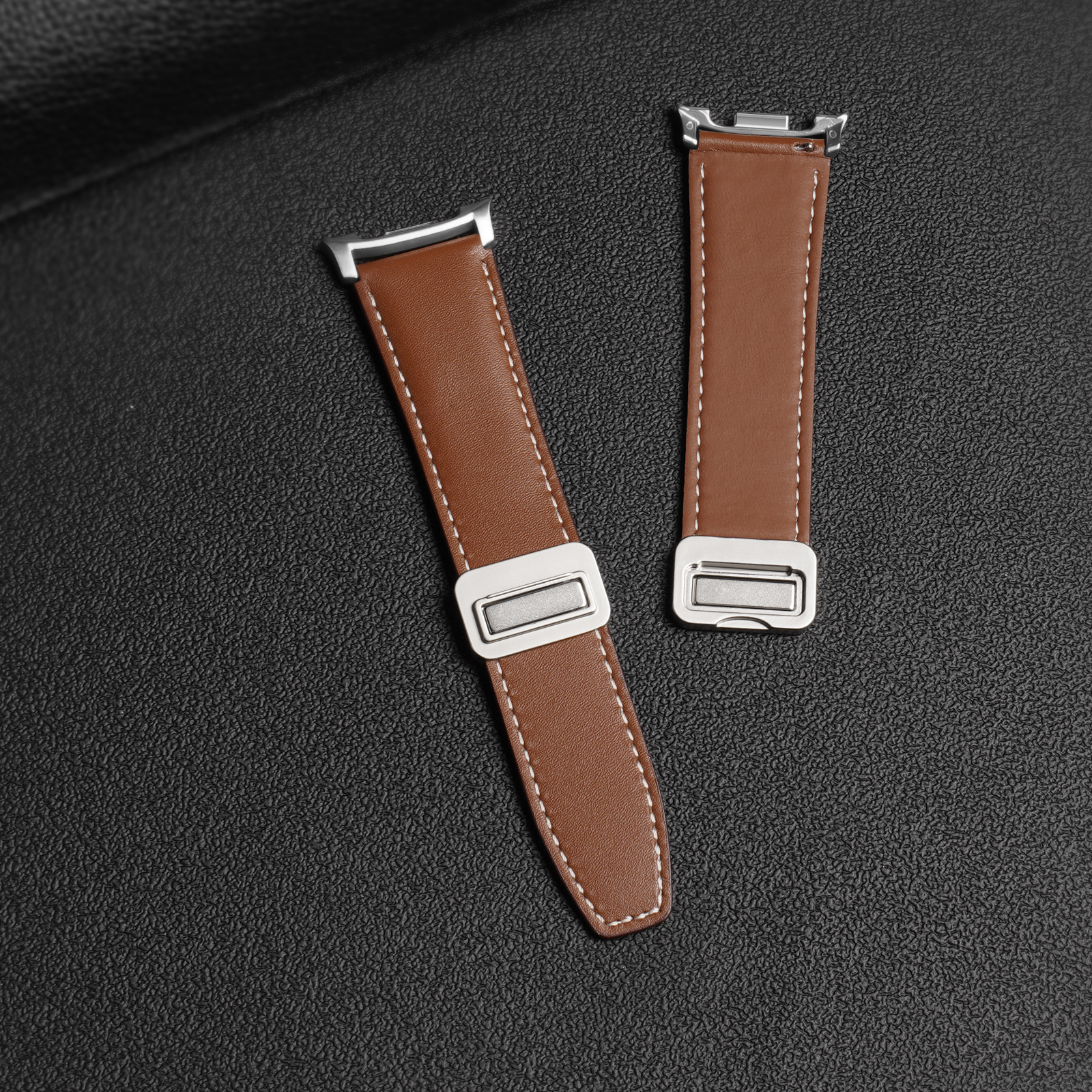 Ремешок из натуральной телячьей кожи коричневого цвета от Dux Ducis для смарт часов Samsung Galaxy Watch 8 (40 и 44мм), серия YA Series.