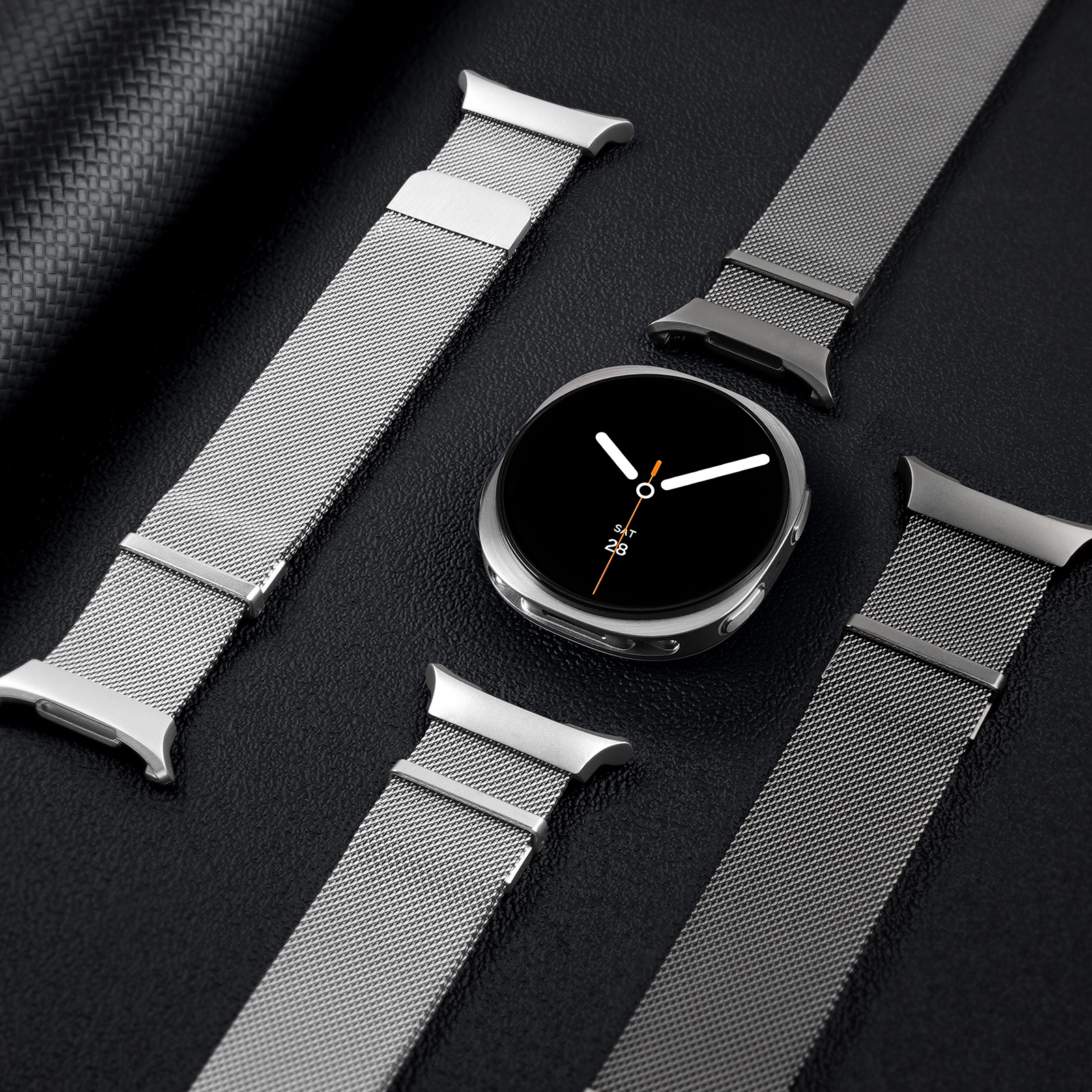 Ремешок из нержавеющей стали серого цвета (Gun-grey) от Dux Ducis для смарт часов Samsung Galaxy Watch 8 (40 и 44мм), серия Milanese Series (миланская петля)