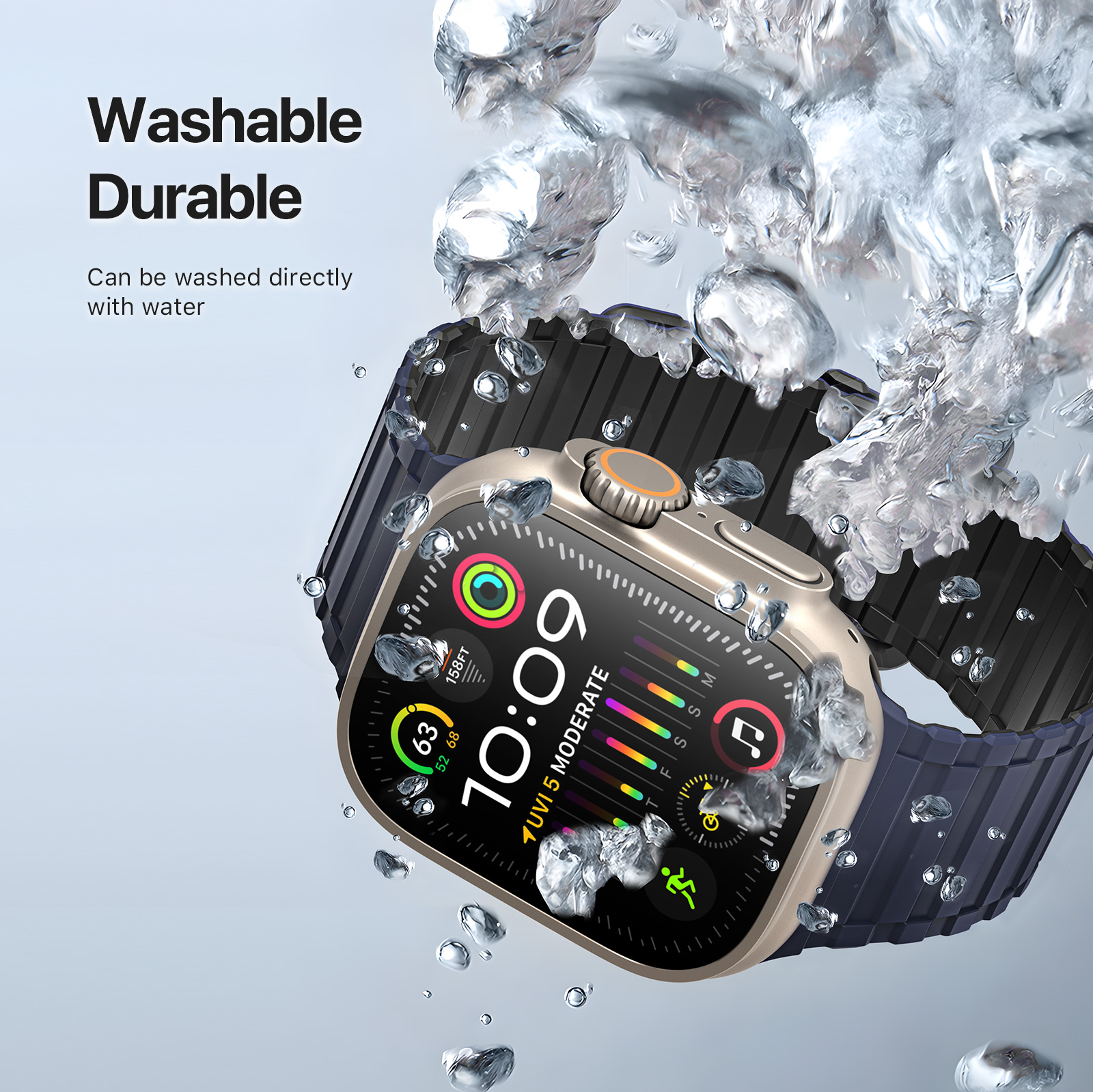 Магнитный ремешок черно-синий цвет (BlackBlue) от Dux Ducis для смарт часов Apple Watch 42, 44, 45, 46, 49мм, серия KJ Series. Идеально подходит для ежедневного использования, включая спорт зал.