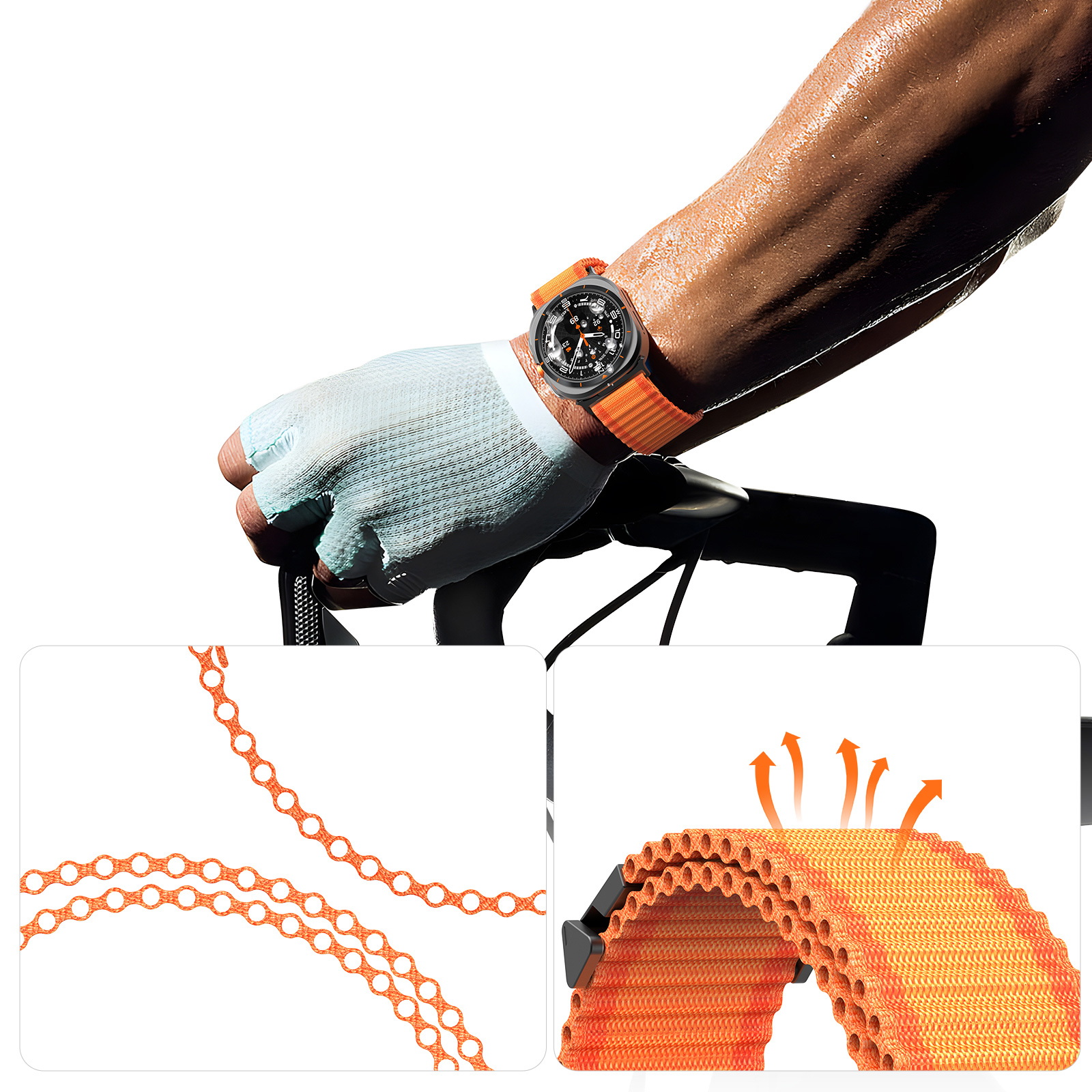 Ремешок плетенный из нейлона оранжевого цвета с воздушными отверстиями для Samsung Watch Ultra 47MM серии YC Series от Dux Ducis
