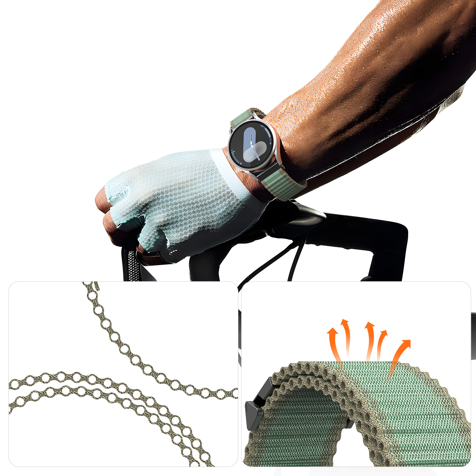 Ремешок плетенный из нейлона зеленого цвета с воздушными отверстиями для смарт часов Samsung Galaxy Watch 3, 4, 5, 6 и 7 (размер крепления 20мм) серии YC Series от Dux Ducis