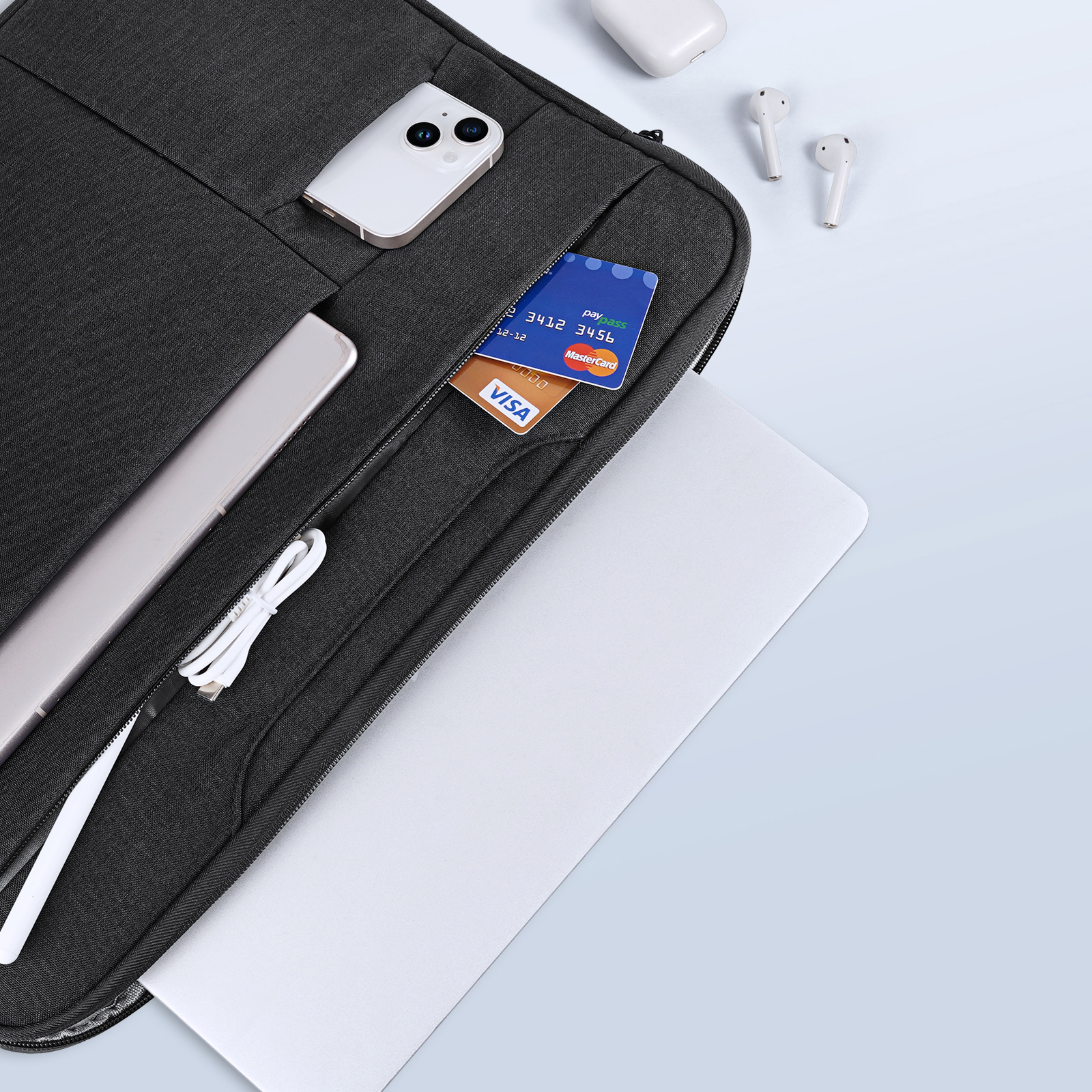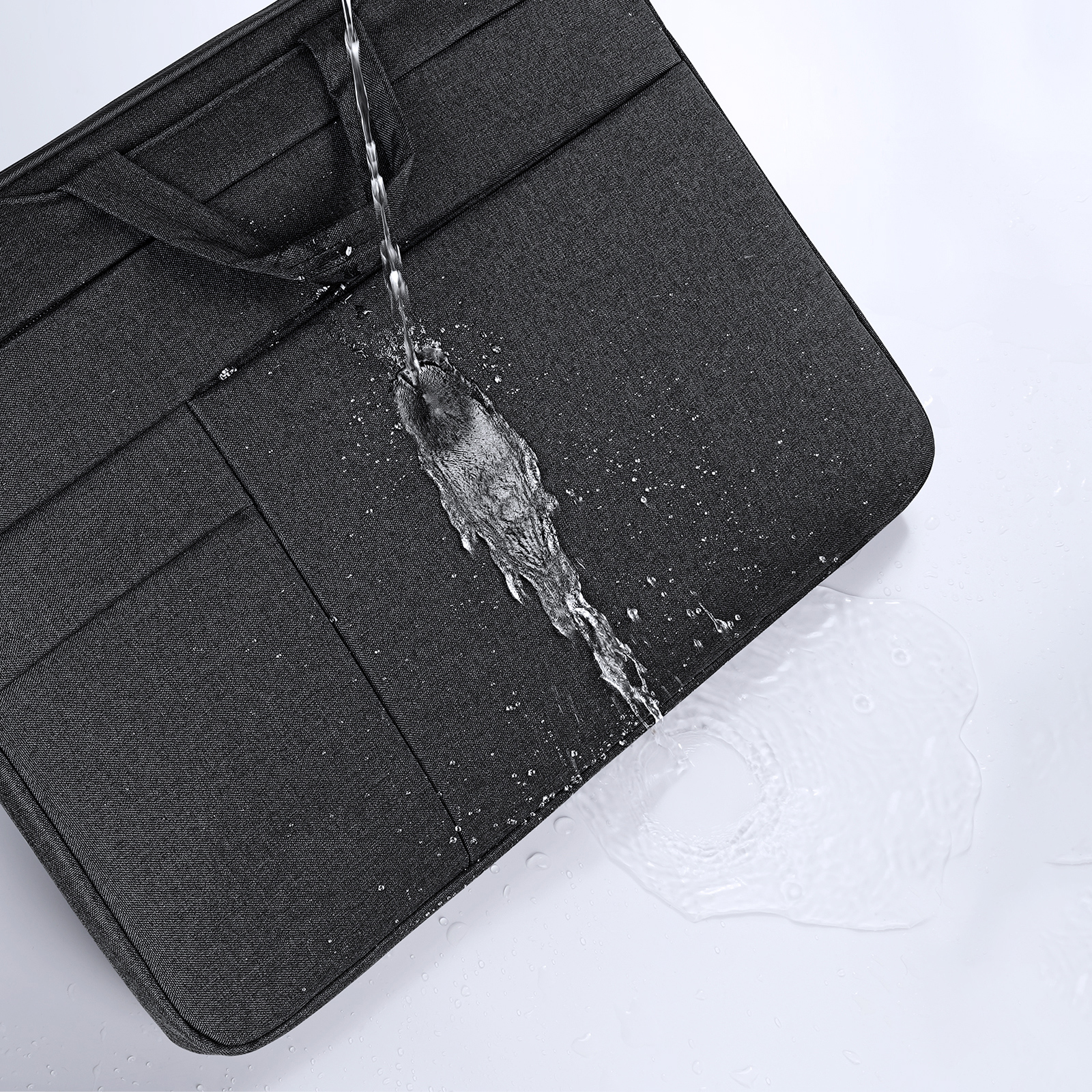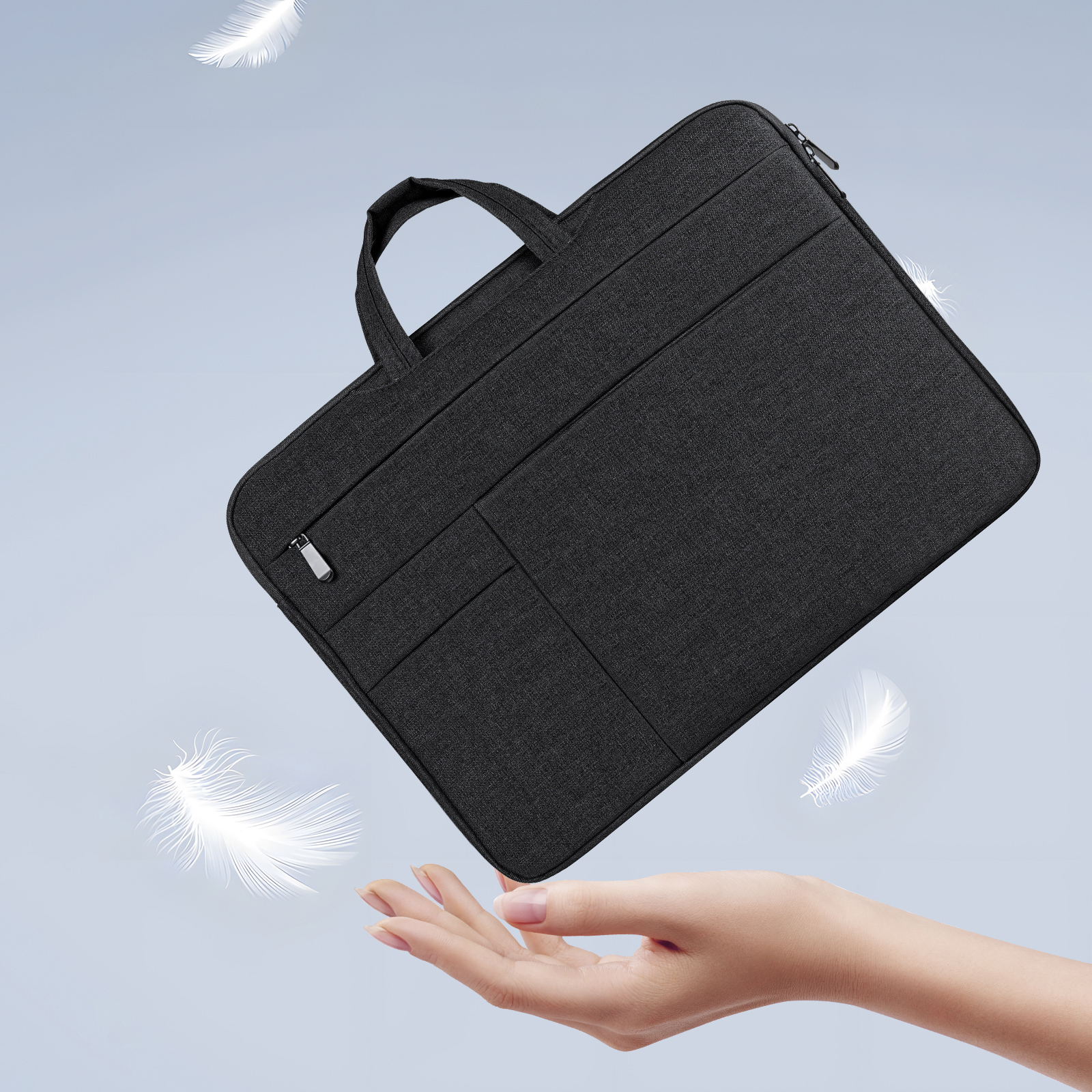 Ручная сумка черного цвета с несколькими карманами от Dux Ducis для ноутбука или планшета размером от 15.5 до 16 дюймов, серия LBTD Series. Изготовлена из полиэстера высокой плотности, имеет водонепроницаемую подкладку, отделение из жемчужного хлопка и подкладку из мягкого кристального бархата. Сумка состоит из двух слоев: внутреннего и внешнего. Внутренний слой предназначен для ноутбука и планшета, а внешний - для мобильного телефона, мыши, часов, внешнего аккумулятора, наушников, кабеля для передачи данных и других аксессуаров.