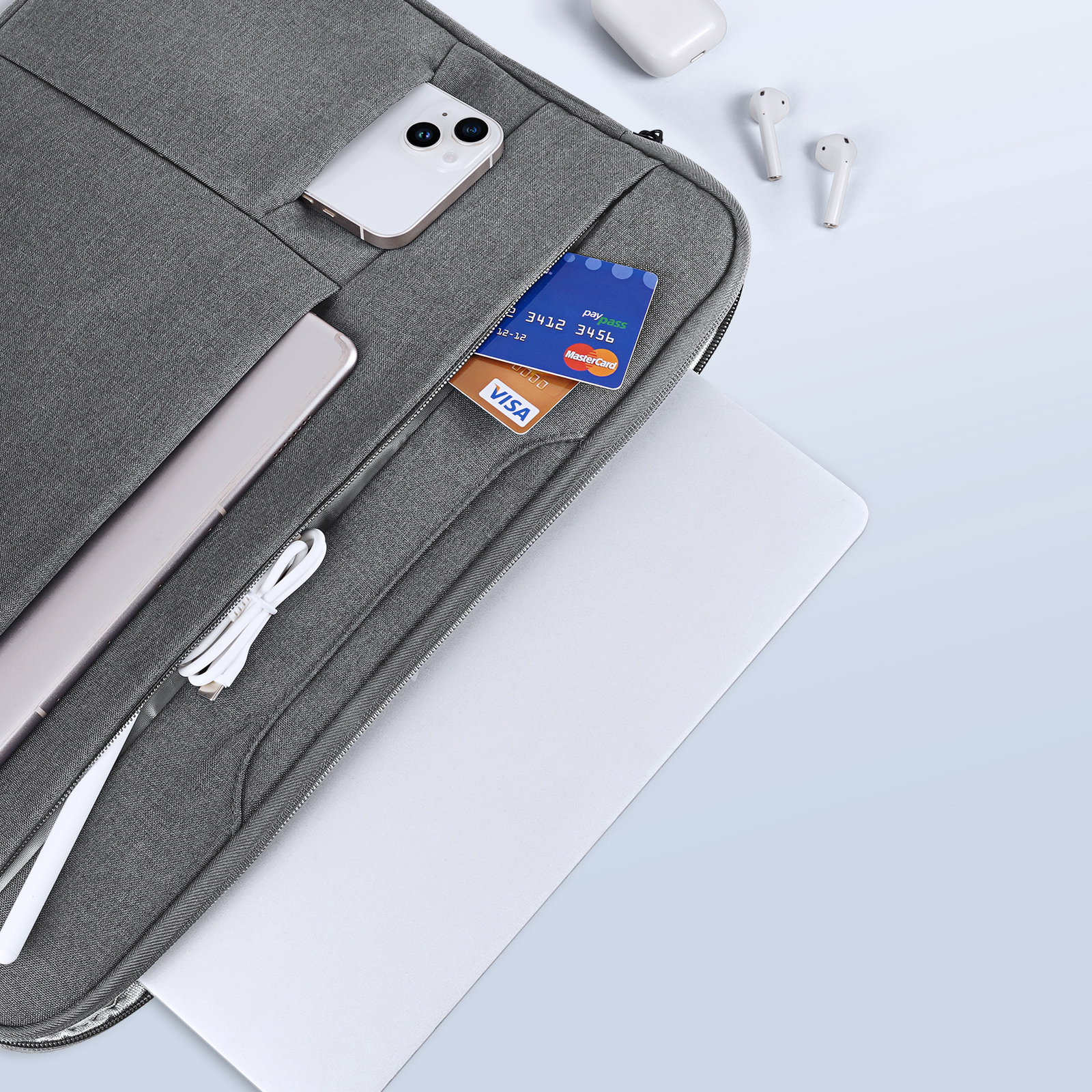 Ручная сумка темно-серого цвета с несколькими карманами от Dux Ducis для ноутбука или планшета размером от 15.5 до 16 дюймов, серия LBTD Series. Изготовлена из полиэстера высокой плотности, имеет водонепроницаемую подкладку, отделение из жемчужного хлопка и подкладку из мягкого кристального бархата. Сумка состоит из двух слоев: внутреннего и внешнего. Внутренний слой предназначен для ноутбука и планшета, а внешний — для мобильного телефона, мыши, часов, внешнего аккумулятора, наушников, кабеля для передачи данных и других аксессуаров.