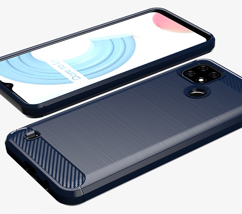 Мягкий бампер чехол накладка темно-синего цвета с высокими бортиками для защиты камеры на телефон OPPO Realme C21 с 2021 года от Caseport, серия Carbon