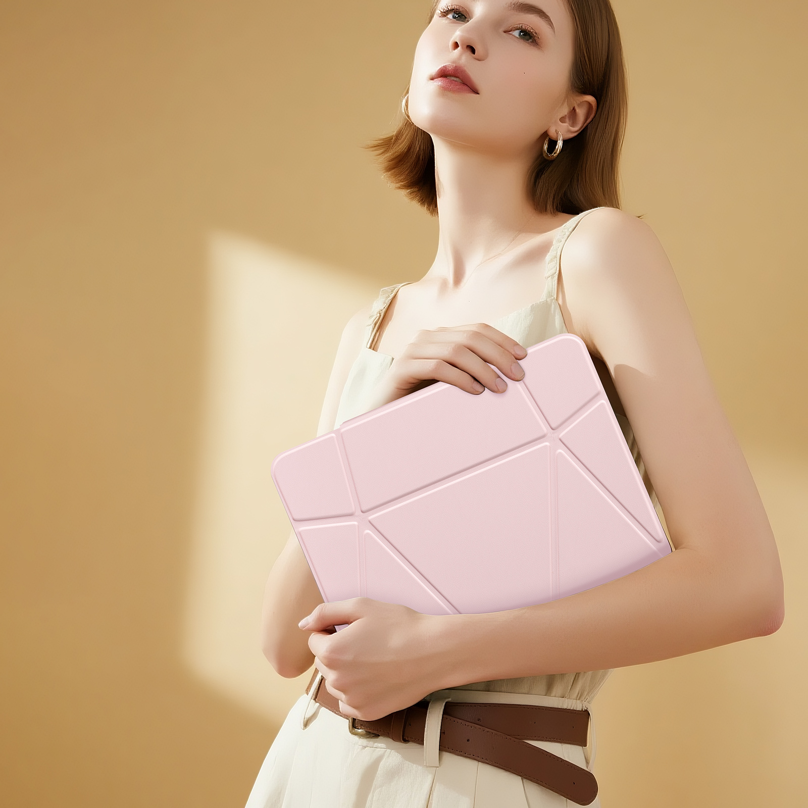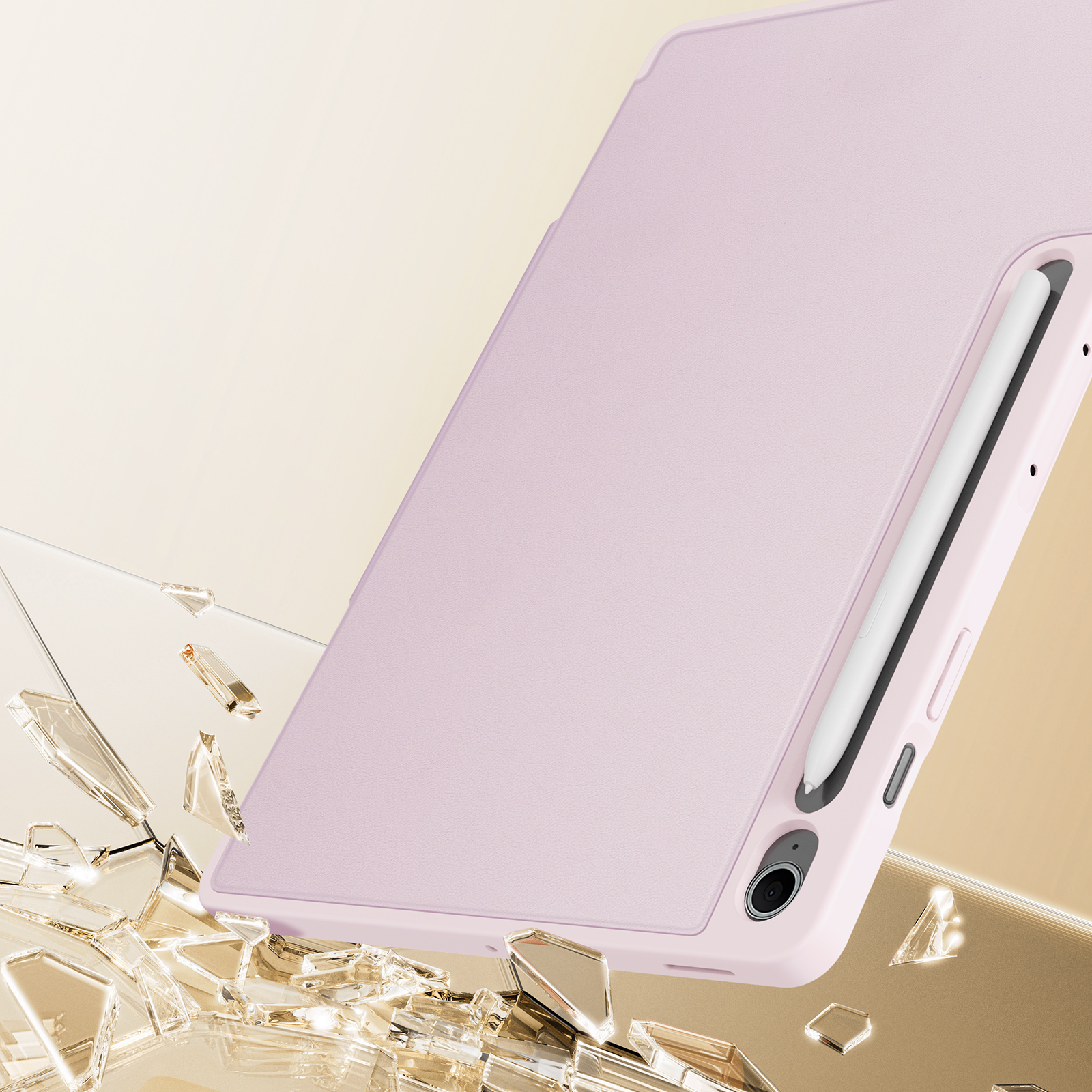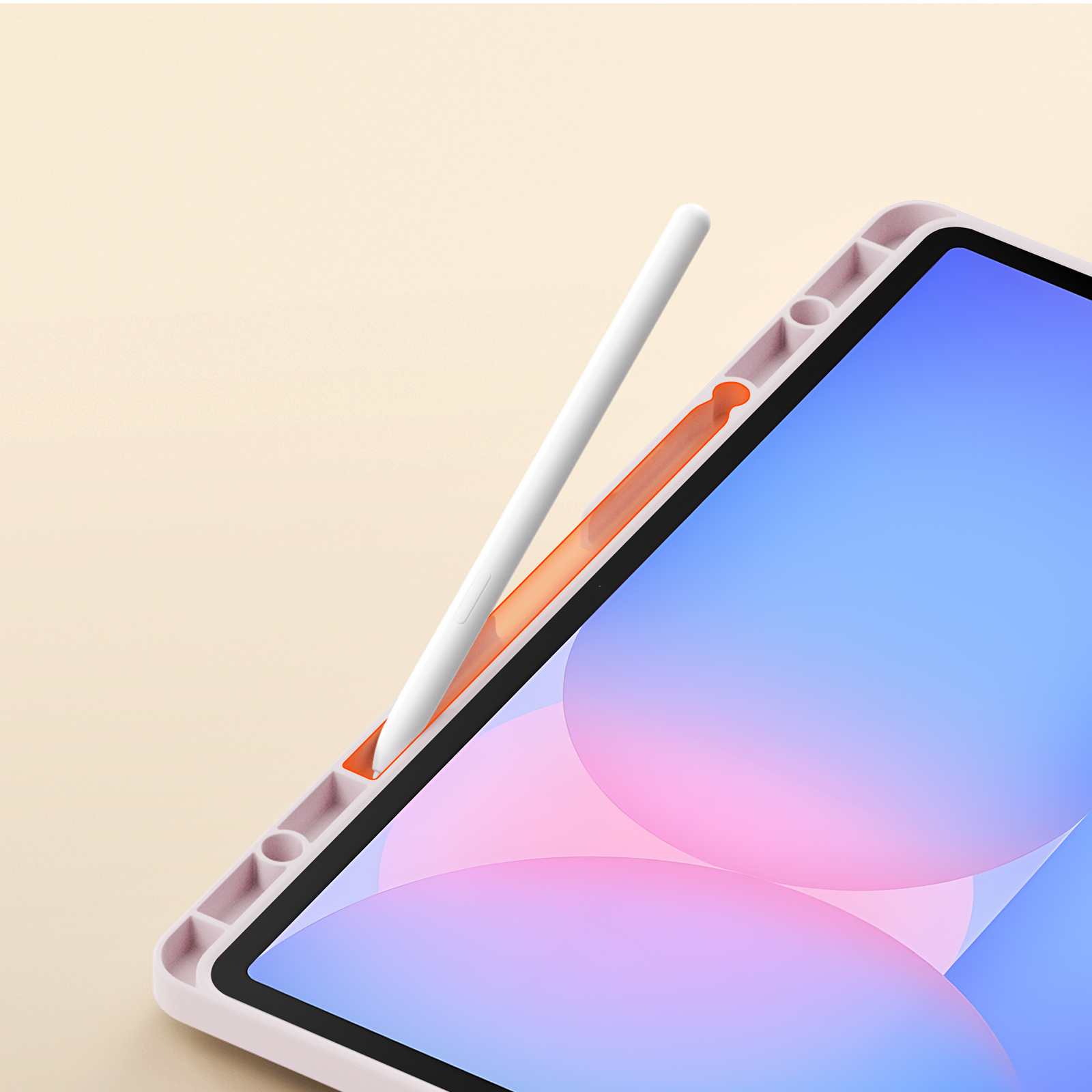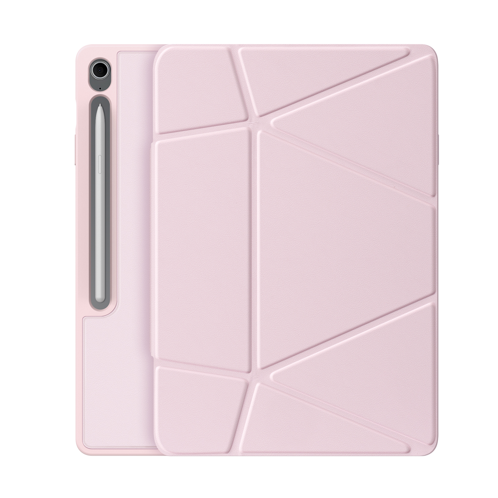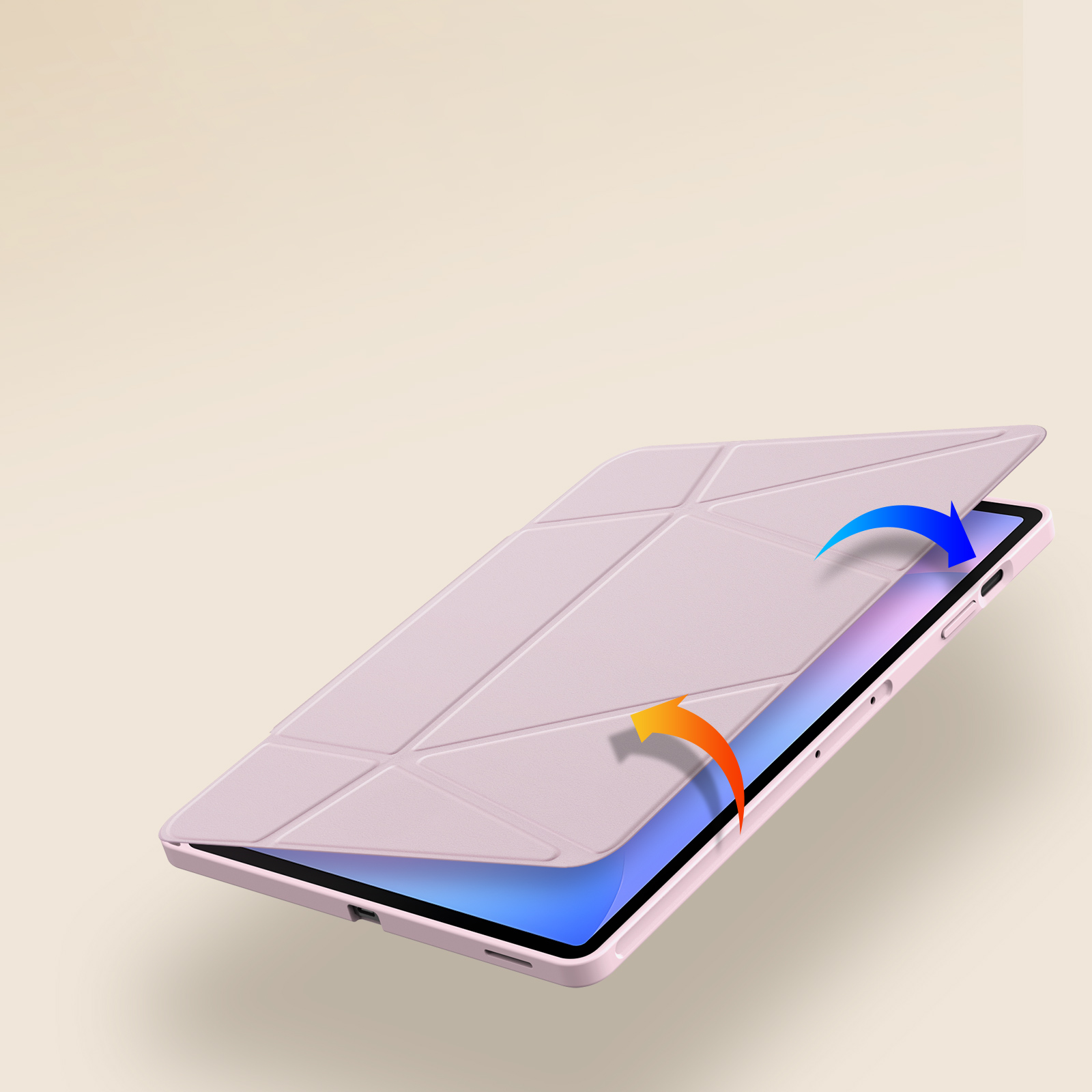 Складной чехол книжка розового цвета от Dux Ducis для Samsung Galaxy Tab S10 FE+, серия Vers Series Case, с магнитным держателем Pencil и и функцией автоматического перехода в спящий режим.