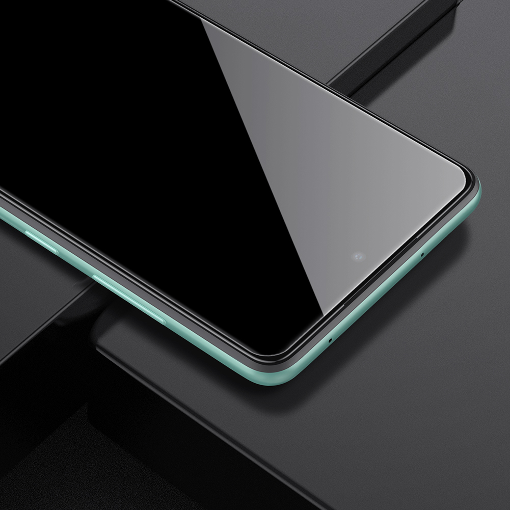 Защитное закаленное стекло 6D с черными рамками и с олеофобным покрытием на дисплей для телефона Samsung Galaxy A52 изготовлено из материалов высокого качества.