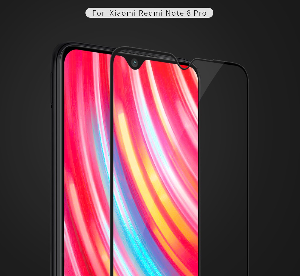 Защитное закаленное стекло 6D с черными рамками и с олеофобным покрытием на дисплей для телефона Xiaomi Redmi Note 8 Pro изготовлено из материалов высокого качества.