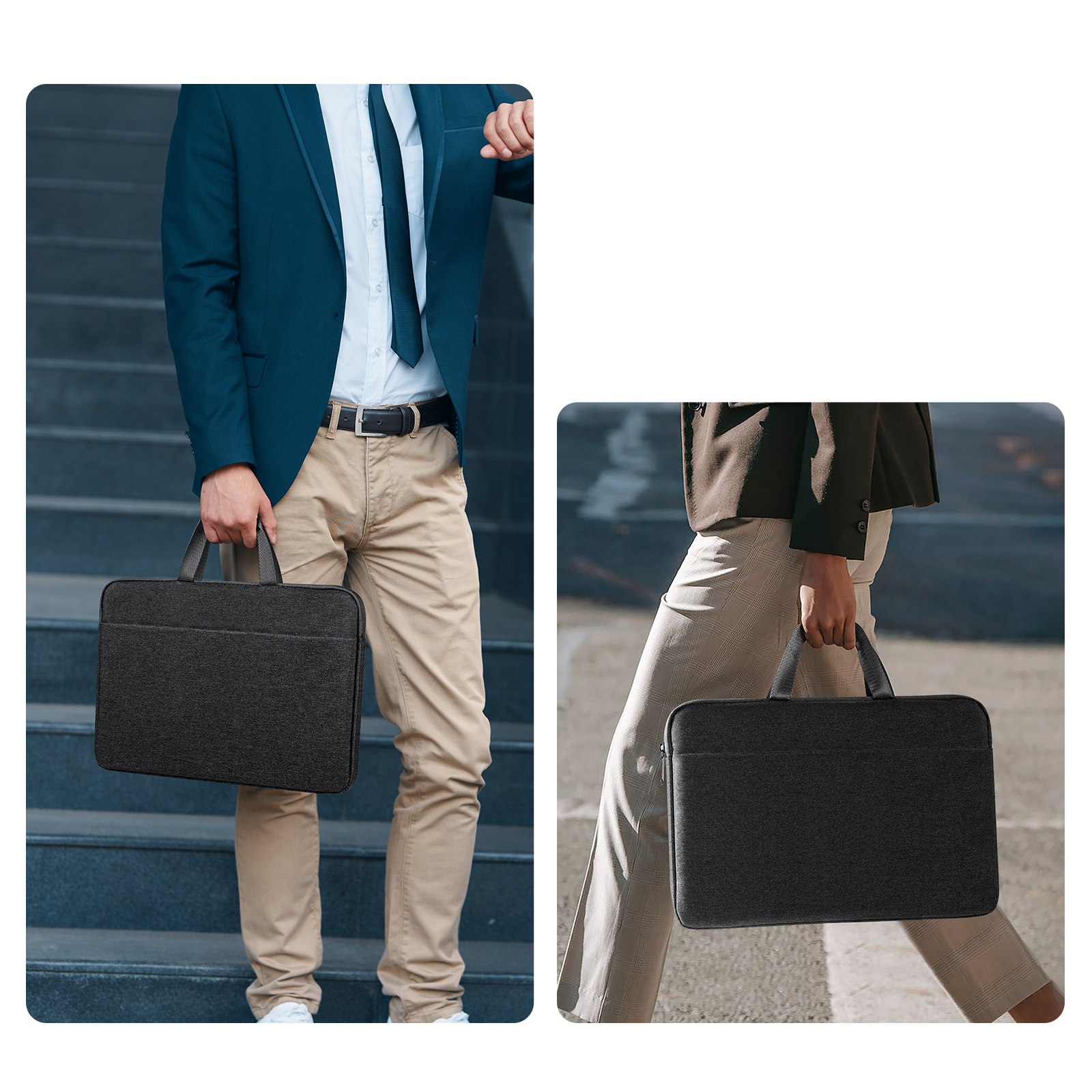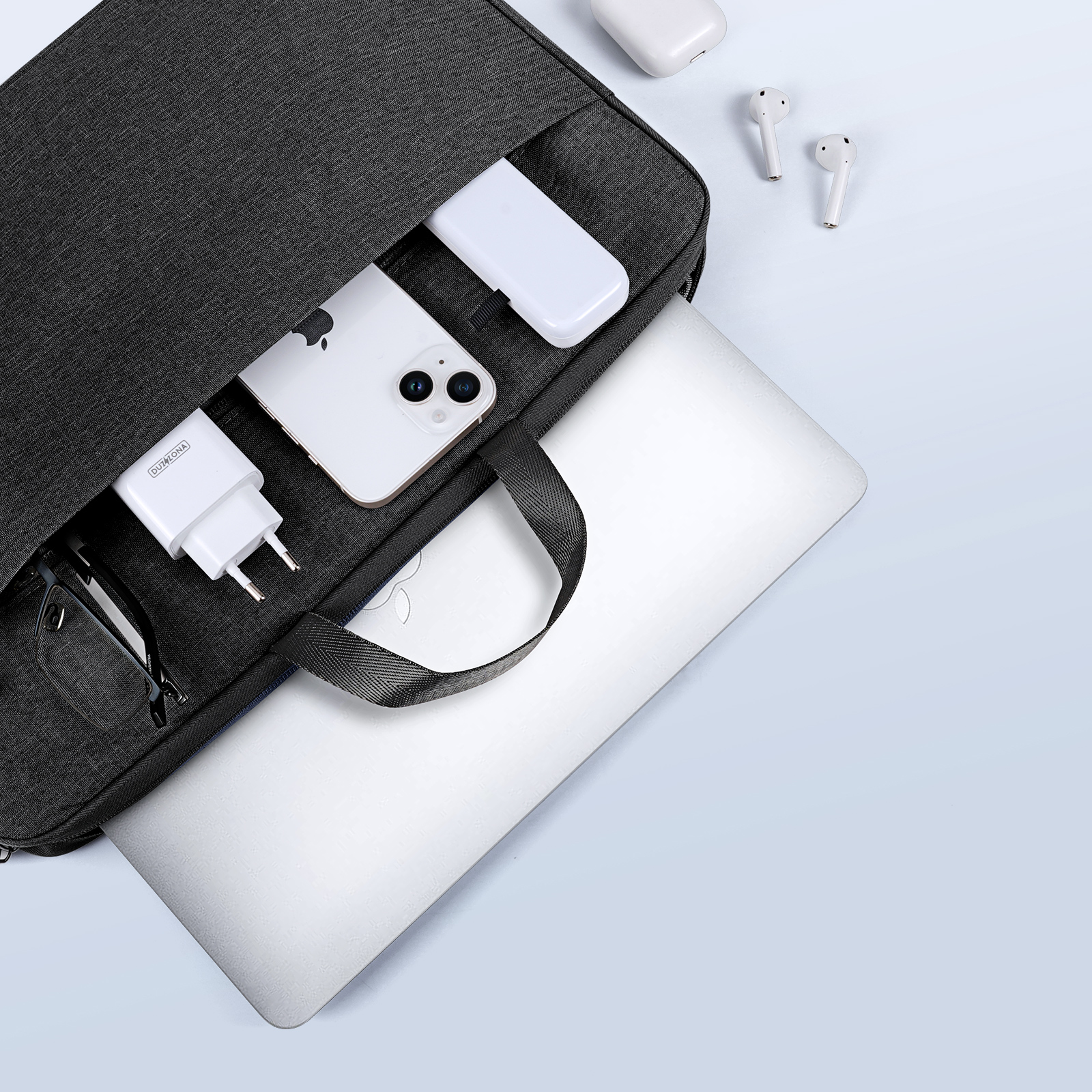 Сумка горизонтальная черного цвета от Dux Ducis для ноутбука или планшета размером от 15.5 до 16 дюймов, серия LBTA Series. Изготовлена из полиэфирной ткани высокой плотности, водонепроницаемая подкладка, отделение из жемчужного хлопка и мягкая подкладка из кристального бархата.
