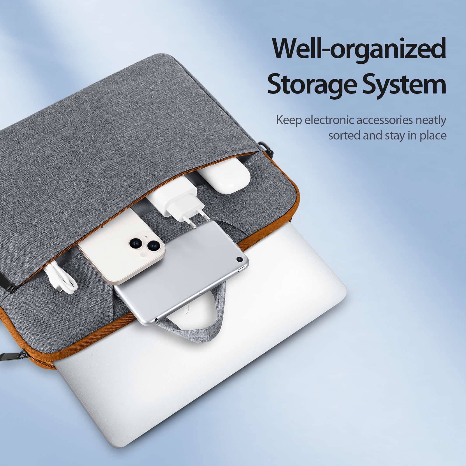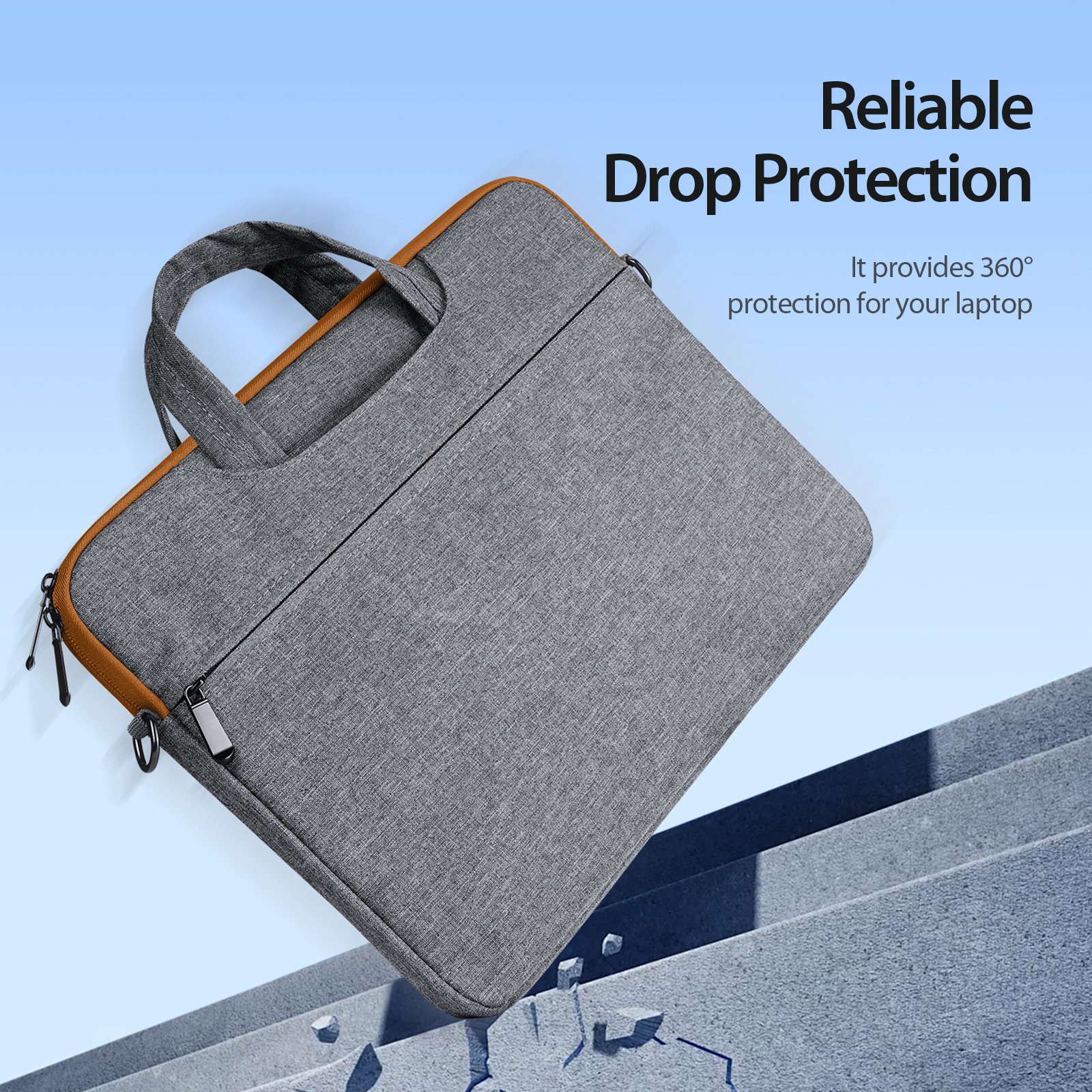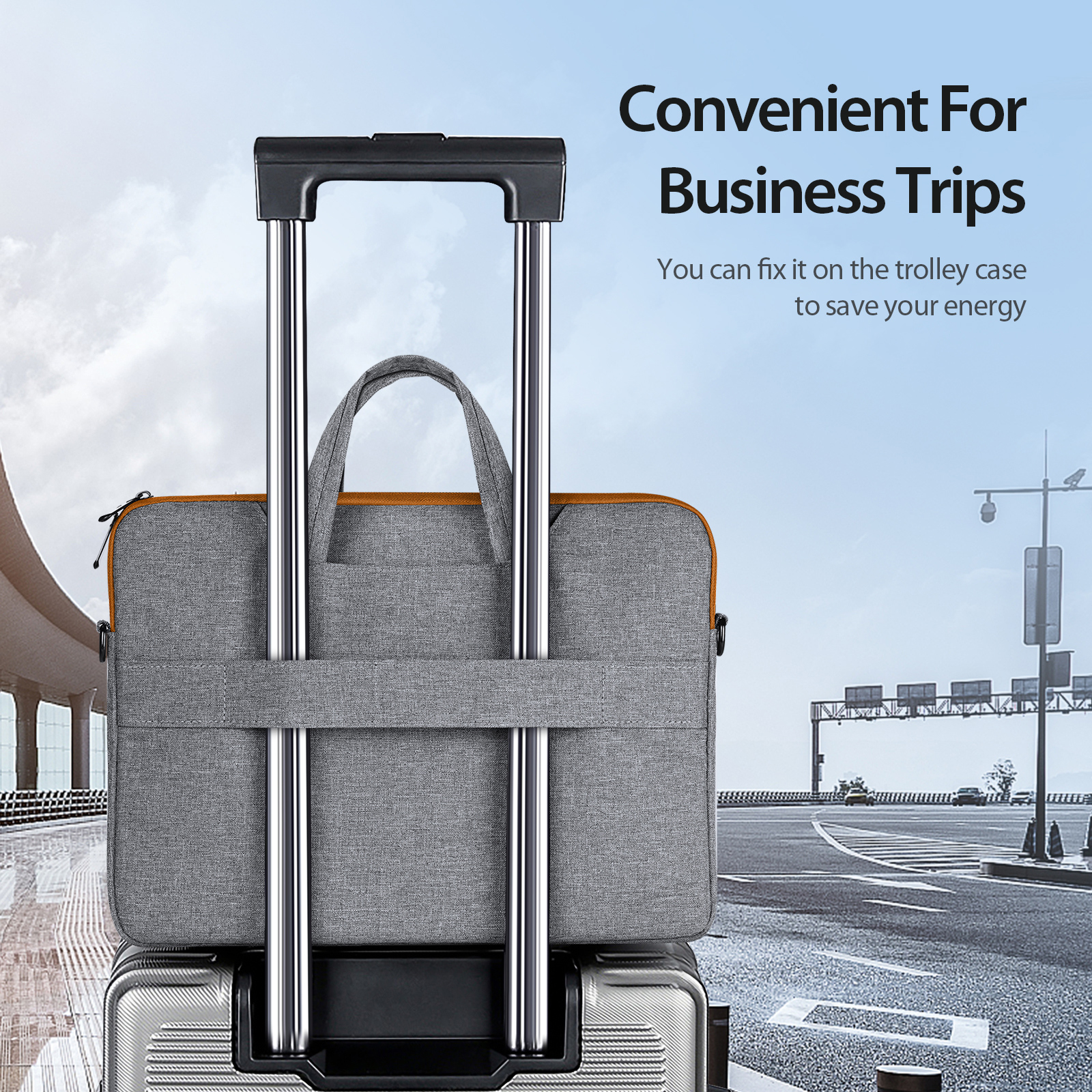 Сумка темно-серого цвета от Dux Ducis на плечо для ноутбука или планшета размером от 14 до 15.4 дюйма, серия LBJC Series. Изготовлена из полиэфирной ткани высокой плотности, водонепроницаемая подкладка, отделение из жемчужного хлопка и мягкая подкладка из кристального бархата.