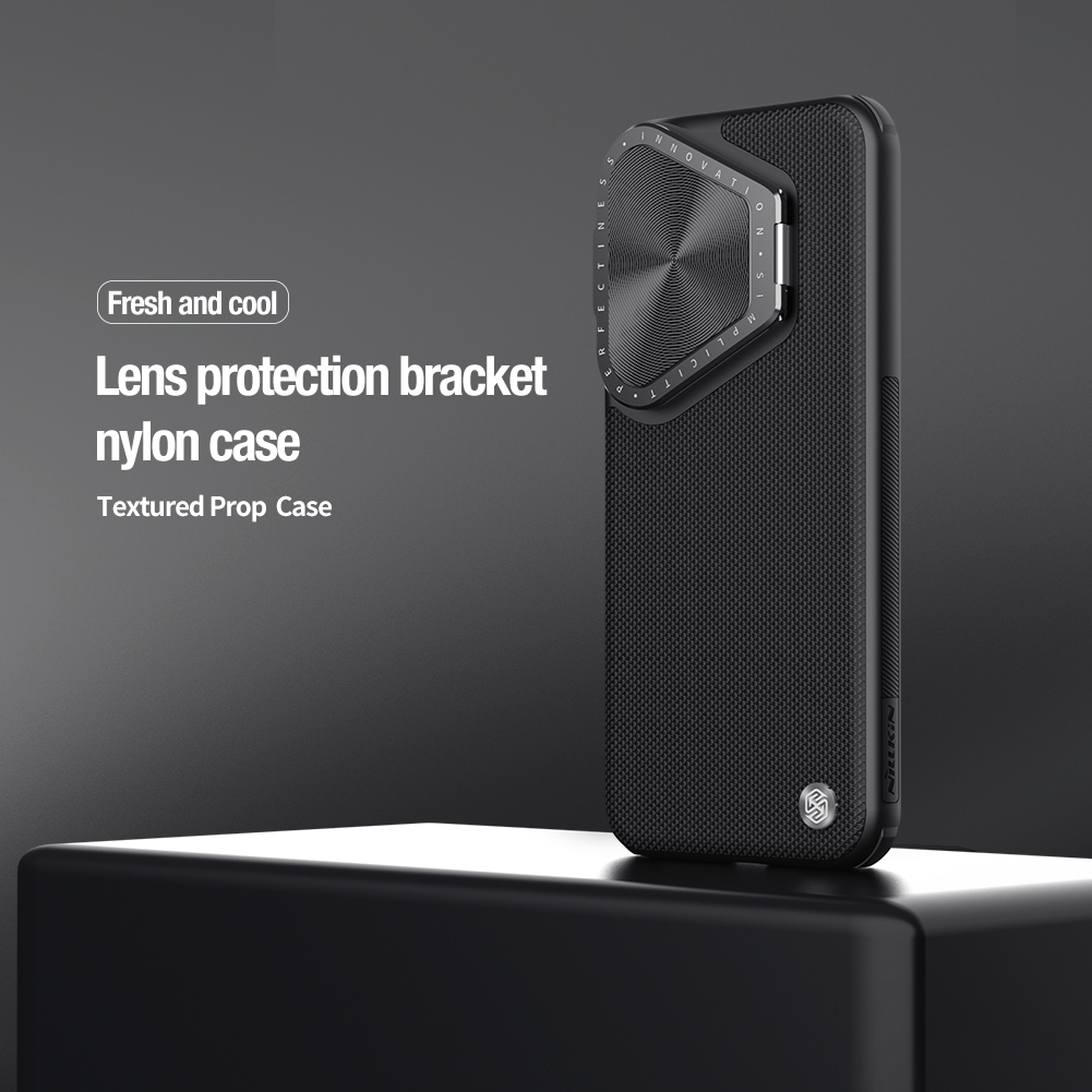 Противоударный текстурный чехол черного цвета с откидной крышкой для камеры от Nillkin серии Textured Prop Case для телефона Huawei Pura 70 Pro и Pura 70 Pro+ создан для любителей активного отдыха.