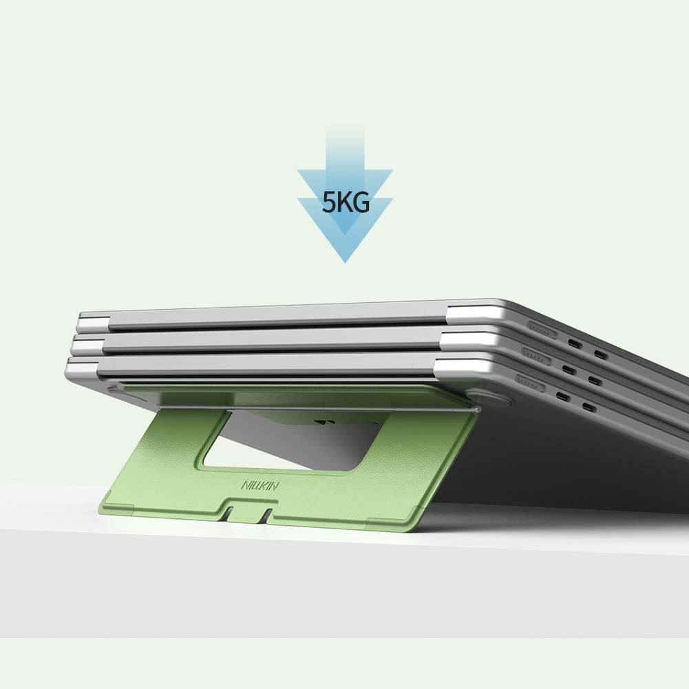 Зеленого тонкая складывающаяся подставка Nillkin DualWing – ваш идеальный спутник для ноутбука благодаря минимальному весу! Подходит для работы из любого места: дом, офис, кафе. Удобство обеспечивает возможность регулировки угла наклона двойными ручками-подставками. Удобное положение экрана облегчает печать и просмотр информации в любом положении (сидя/стоя). Стильный дизайн подчеркнет индивидуальность владельца.