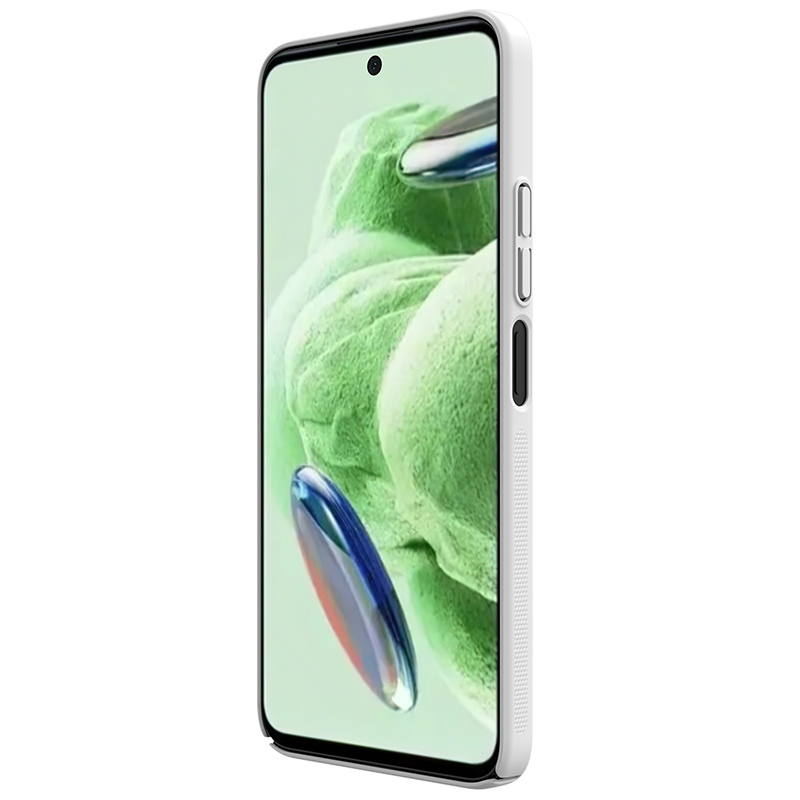 Тонкий жесткий чехол белого цвета от Nillkin серии Super Frosted Shield для смартфона Xiaomi Redmi 12 4G, Note 12R 5G и Poco M6 Pro 5G изготавливается из экологичных материалов путем высокоточного литья под давление с высокой температурой.