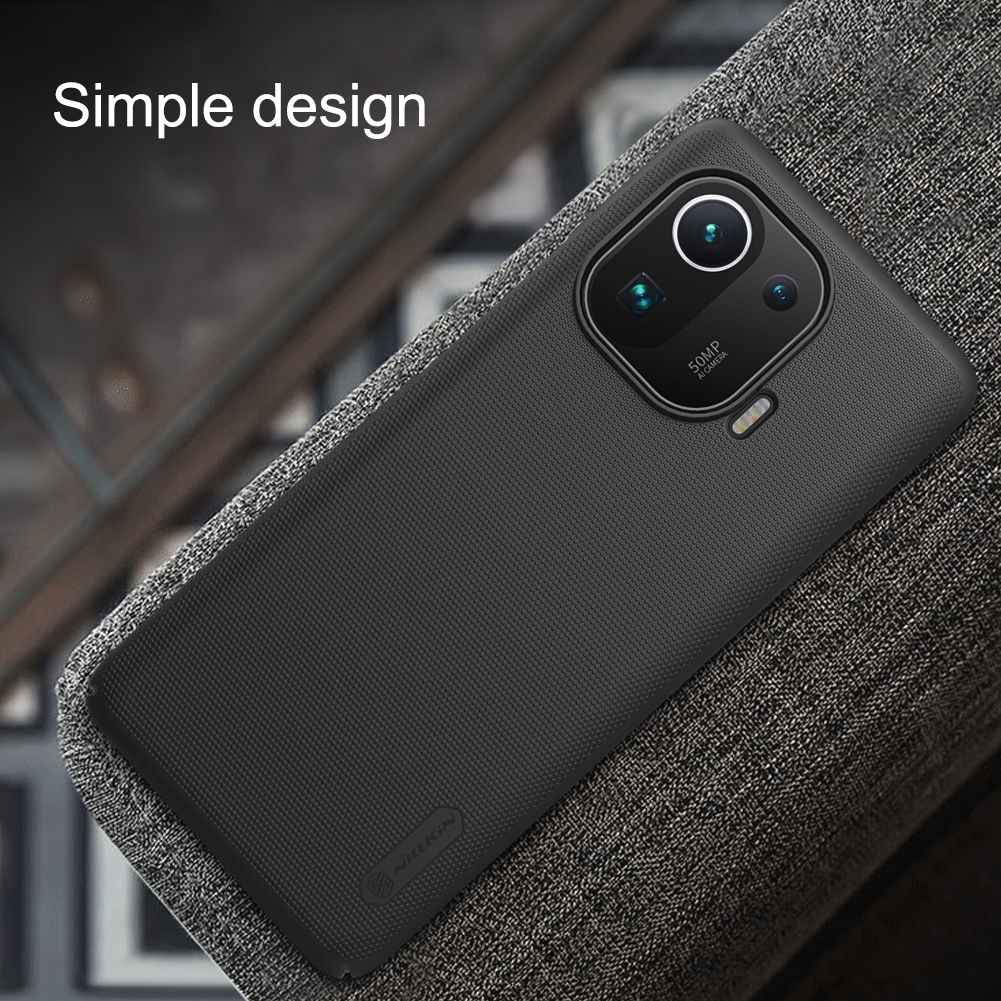 Тонкий чехол черного цвета от Nillkin серии Super Frosted Shield для смартфона Xiaomi Mi 11 Pro с 2021 года изготавливается из экологичных материалов путем высокоточного литья под давление с высокой температурой.