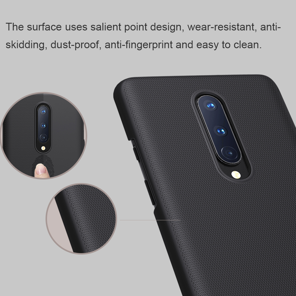 Тонкий чехол черного цвета от Nillkin серии Super Frosted Shield для смартфона OnePlus 8 изготавливается из экологичных материалов путем высокоточного литья под давление с высокой температурой.