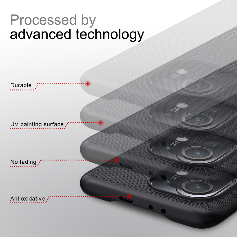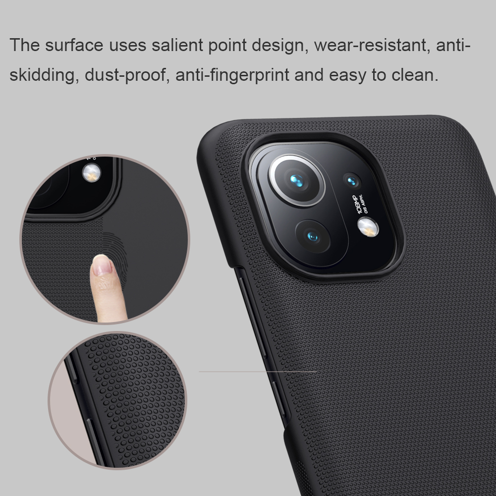 Тонкий чехол черного цвета от Nillkin серии Super Frosted Shield для смартфона Xiaomi Mi 11 изготавливается из экологичных материалов путем высокоточного литья под давление с высокой температурой.