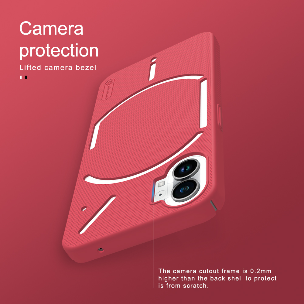 Тонкий чехол красного цвета от Nillkin серии Super Frosted Shield для смартфона Nothing Phone (1) изготавливается из экологичных материалов путем высокоточного литья под давление с высокой температурой.