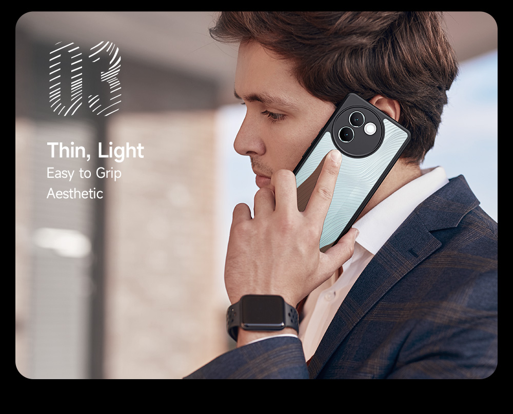 Тонкий чехол с мягкими черными рамками от Dux Ducis серии Aimo Series Case для смартфона Vivo V30e изготавливается из экологичных материалов путем высокоточного литья под давление с высокой температурой.