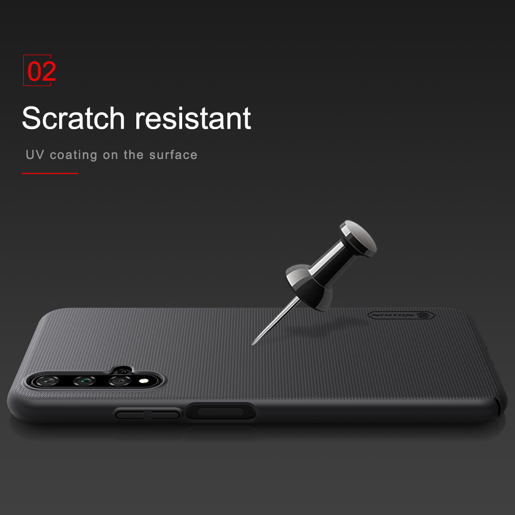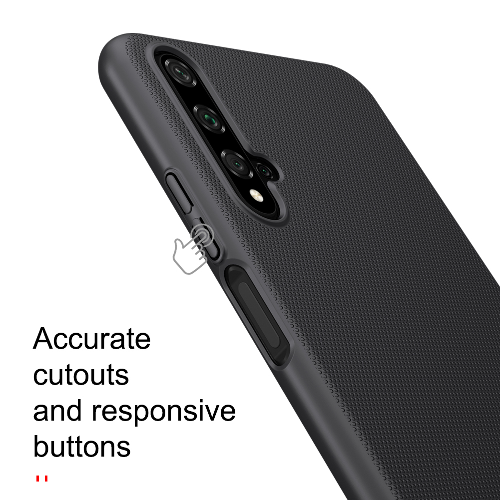 Чехол черного цвета от Nillkin серии Super Frosted Shield для смартфона Huawei Honor 20, Honor 20S и Nova 5T изготавливается из экологичных материалов путем высокоточного литья под давление с высокой температурой.