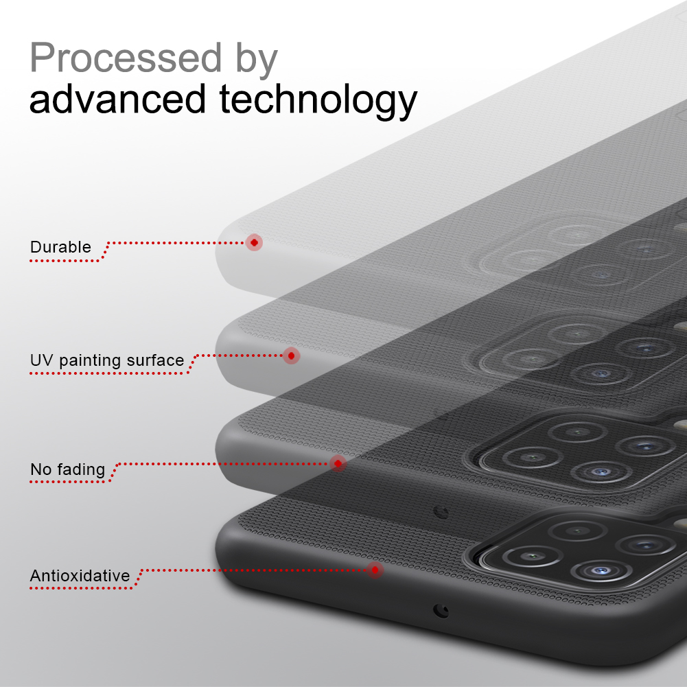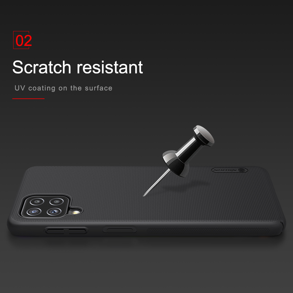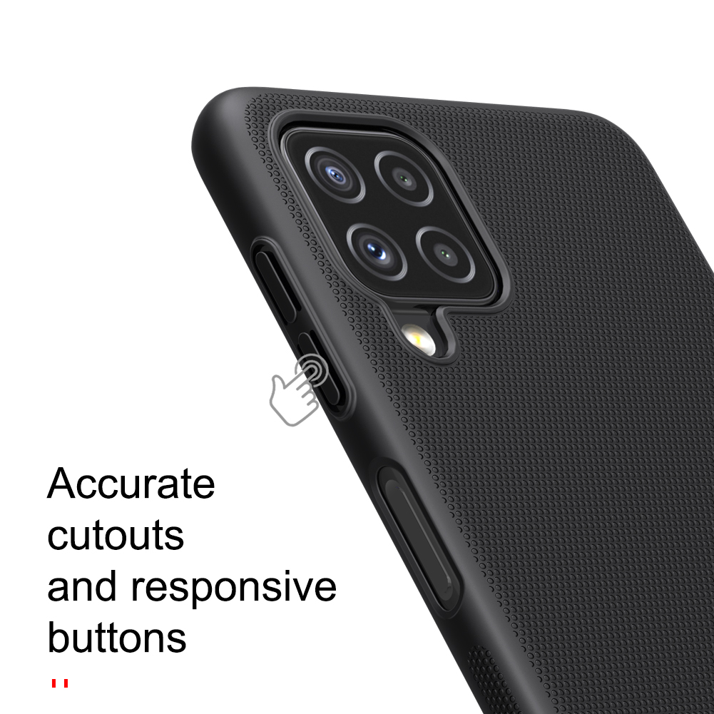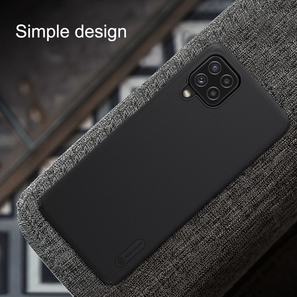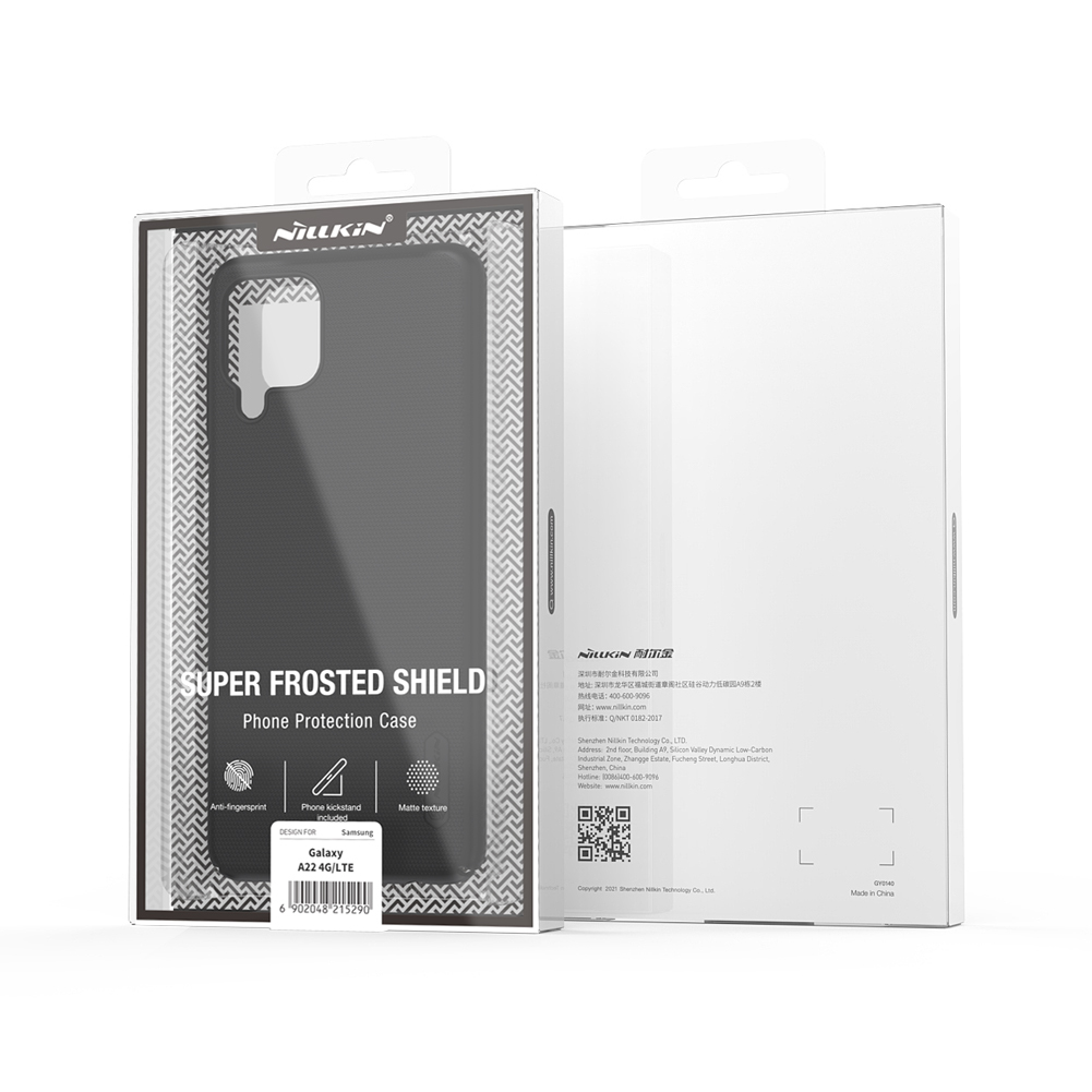Чехол черного цвета от Nillkin серии Super Frosted Shield для смартфона Samsung Galaxy A22, 4G/LTE с 2021 года изготавливается из экологичных материалов путем высокоточного литья под давление с высокой температурой.
