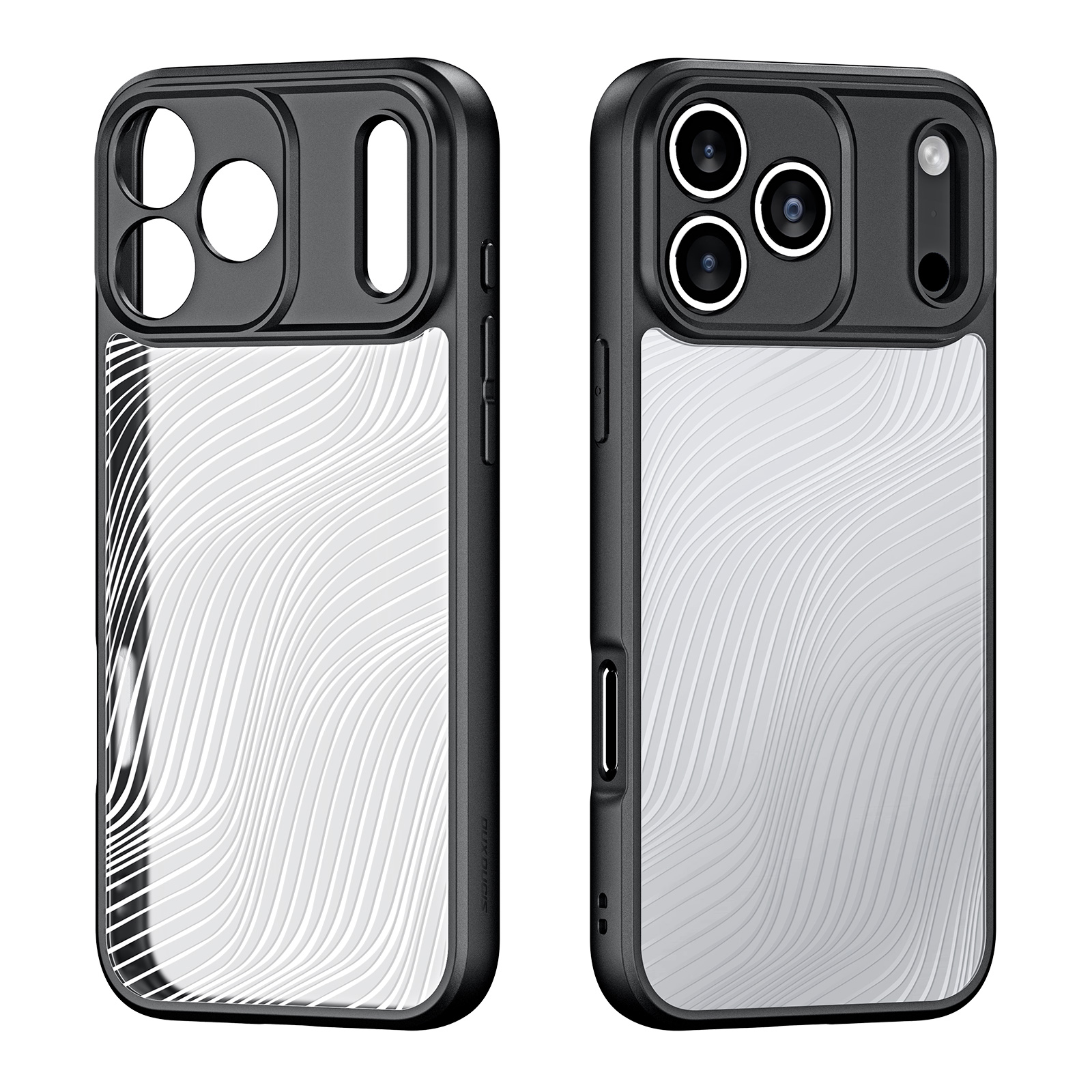Тонкий чехол с мягкими черными рамками от Dux Ducis серии Aimo Series Case для смартфона iPhone 17 Pro изготавливается из экологичных материалов путем высокоточного литья под давление с высокой температурой.