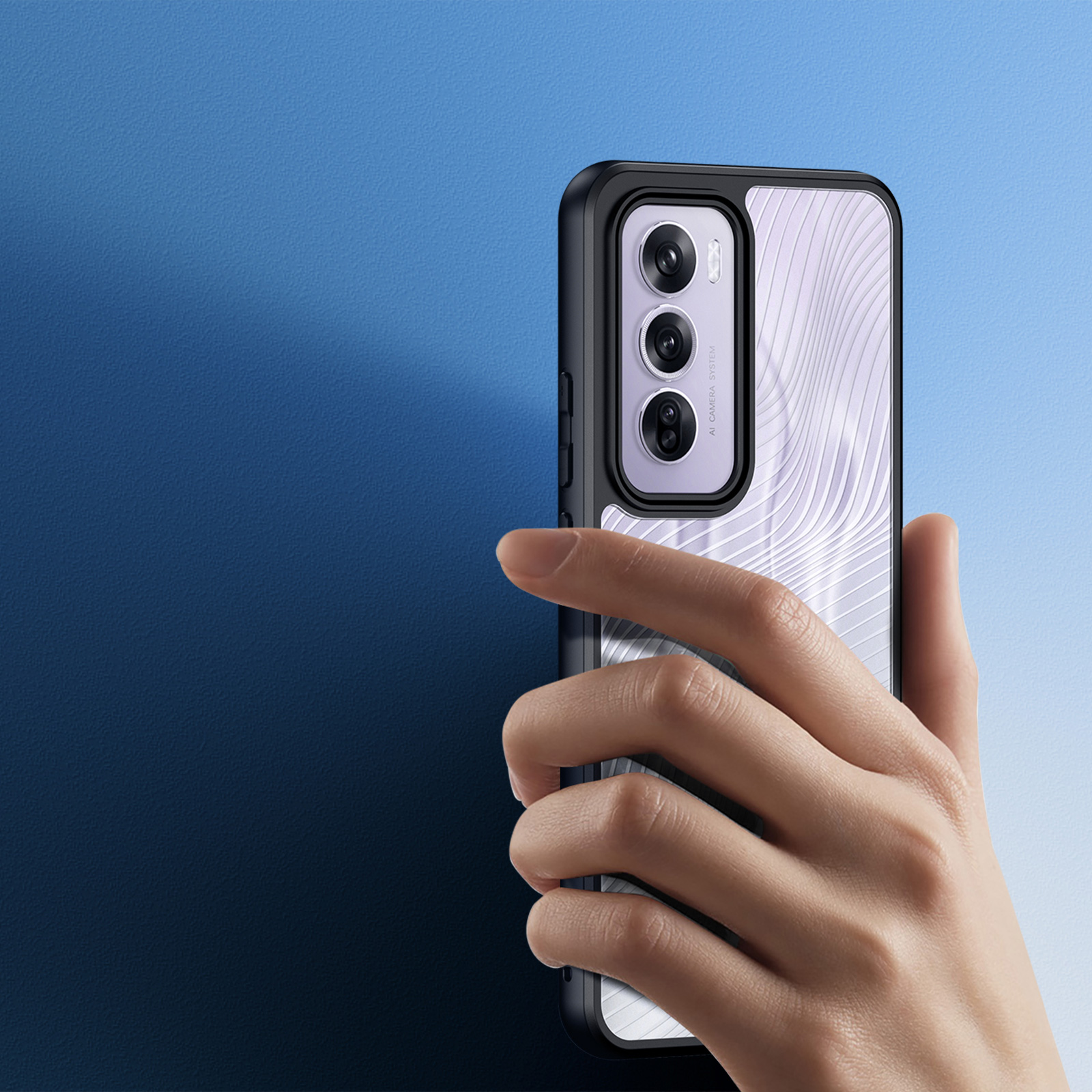 Тонкий чехол с мягкими черными рамками от Dux Ducis серии Aimo Series Case для смартфона OPPO Reno12 Pro изготавливается из экологичных материалов путем высокоточного литья под давление с высокой температурой.