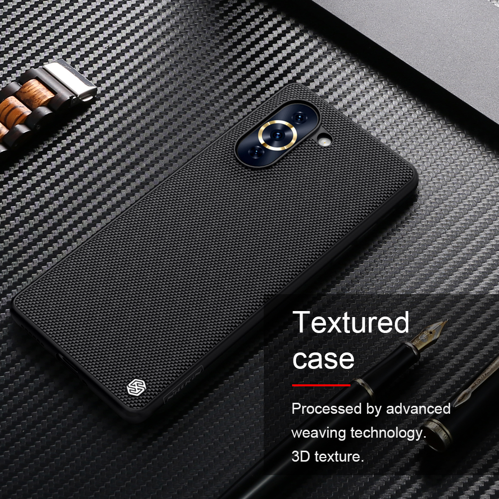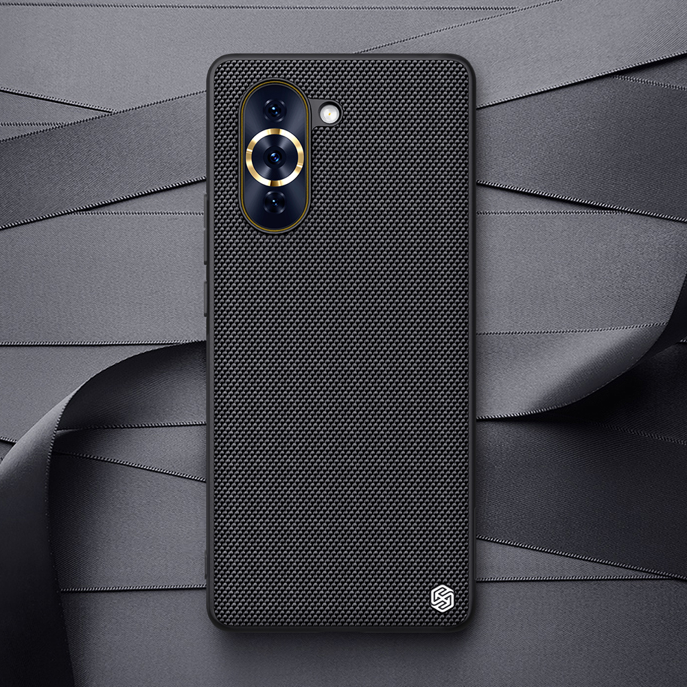 Тонкий чехол черного цвета из нейлонового волокна от Nillkin серии Textured Case для смартфона Huawei Nova 10 изготавливается из прочного и долговечного материала из очищенного нейлонового волокна.