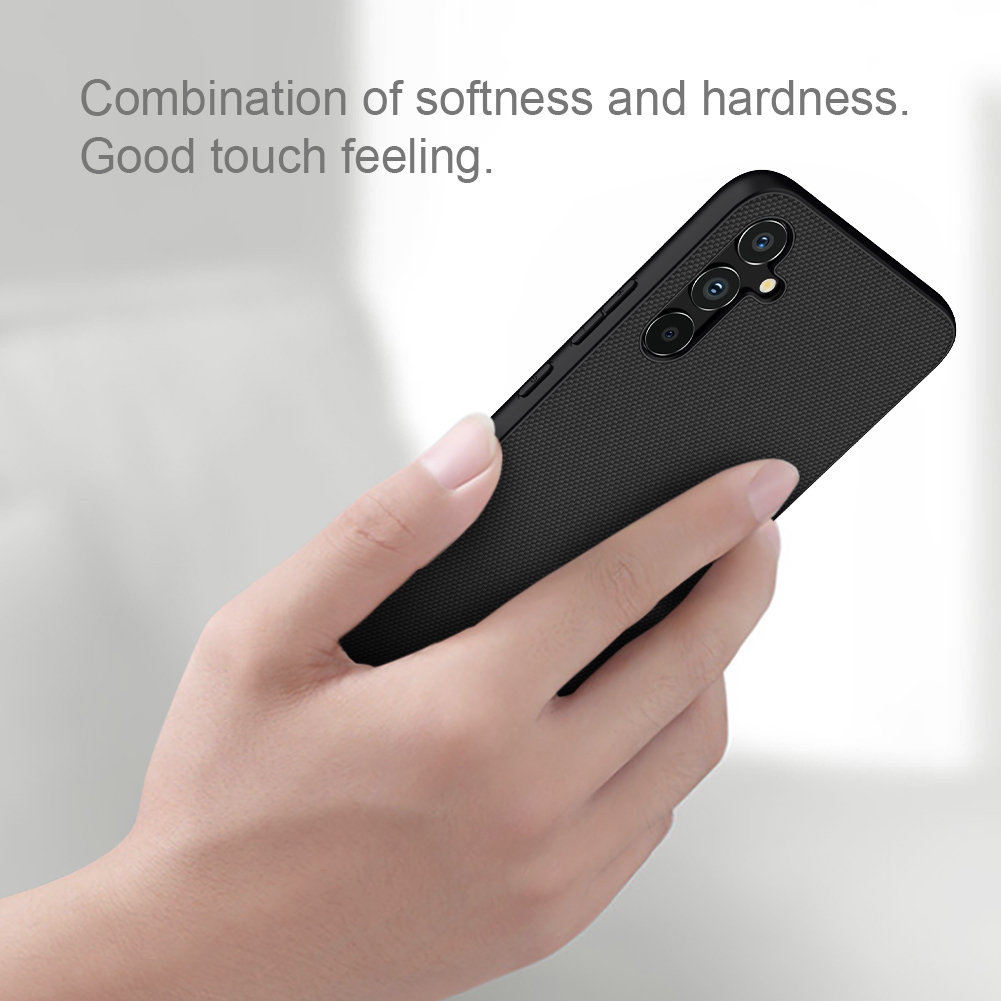 Тонкий чехол черного цвета из нейлонового волокна от Nillkin серии Textured Case для смартфона Samsung Galaxy A34 5G изготавливается из прочного и долговечного материала из очищенного нейлонового волокна.
