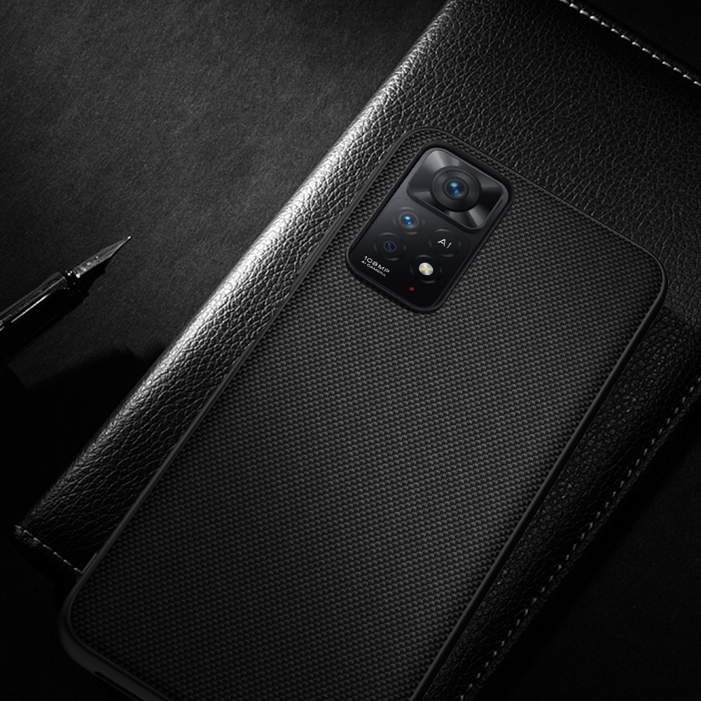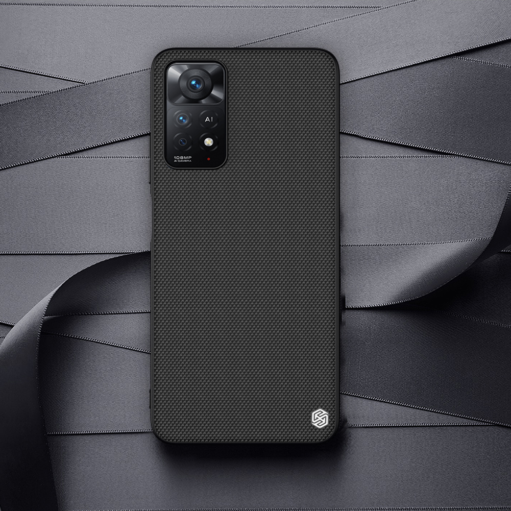 Тонкий чехол черного цвета из нейлонового волокна от Nillkin серии Textured Case для смартфона Xiaomi Redmi Note 11 Pro Global и Redmi Note 12 Pro 4G изготавливается из прочного и долговечного материала из очищенного нейлонового волокна.