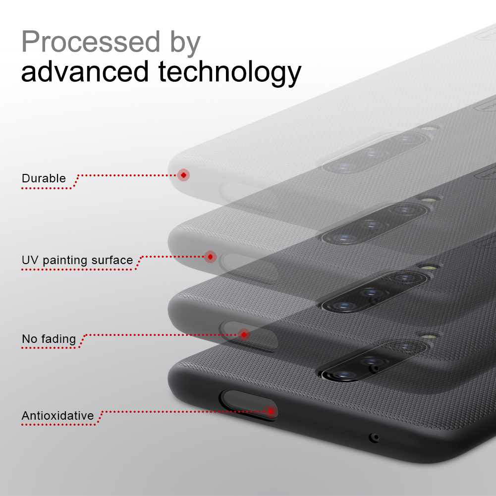 Тонкий чехол черного цвета от Nillkin серии Super Frosted Shield для смартфона OnePlus 7 Pro изготавливается из экологичных материалов путем высокоточного литья под давление с высокой температурой.
