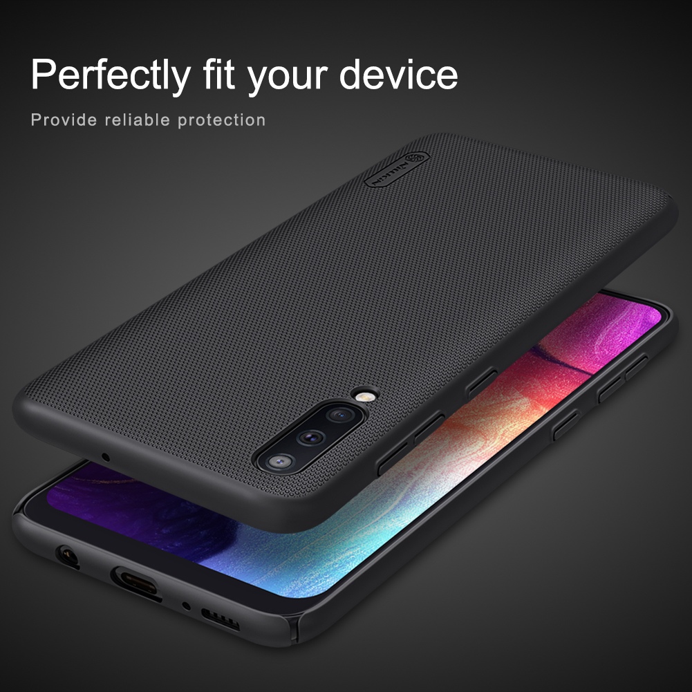 Тонкий чехол черного цвета от Nillkin серии Super Frosted Shield для смартфона Samsung Galaxy A50 изготавливается из экологичных материалов путем высокоточного литья под давление с высокой температурой.