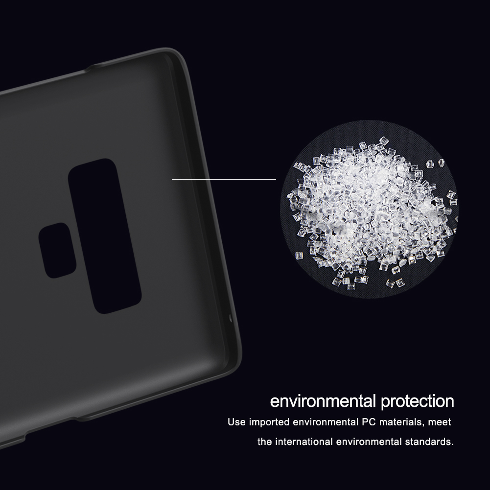 Тонкий чехол черного цвета от Nillkin серии Super Frosted Shield для смартфона Samsung Galaxy Note 9 изготавливается из экологичных материалов путем высокоточного литья под давление с высокой температурой.