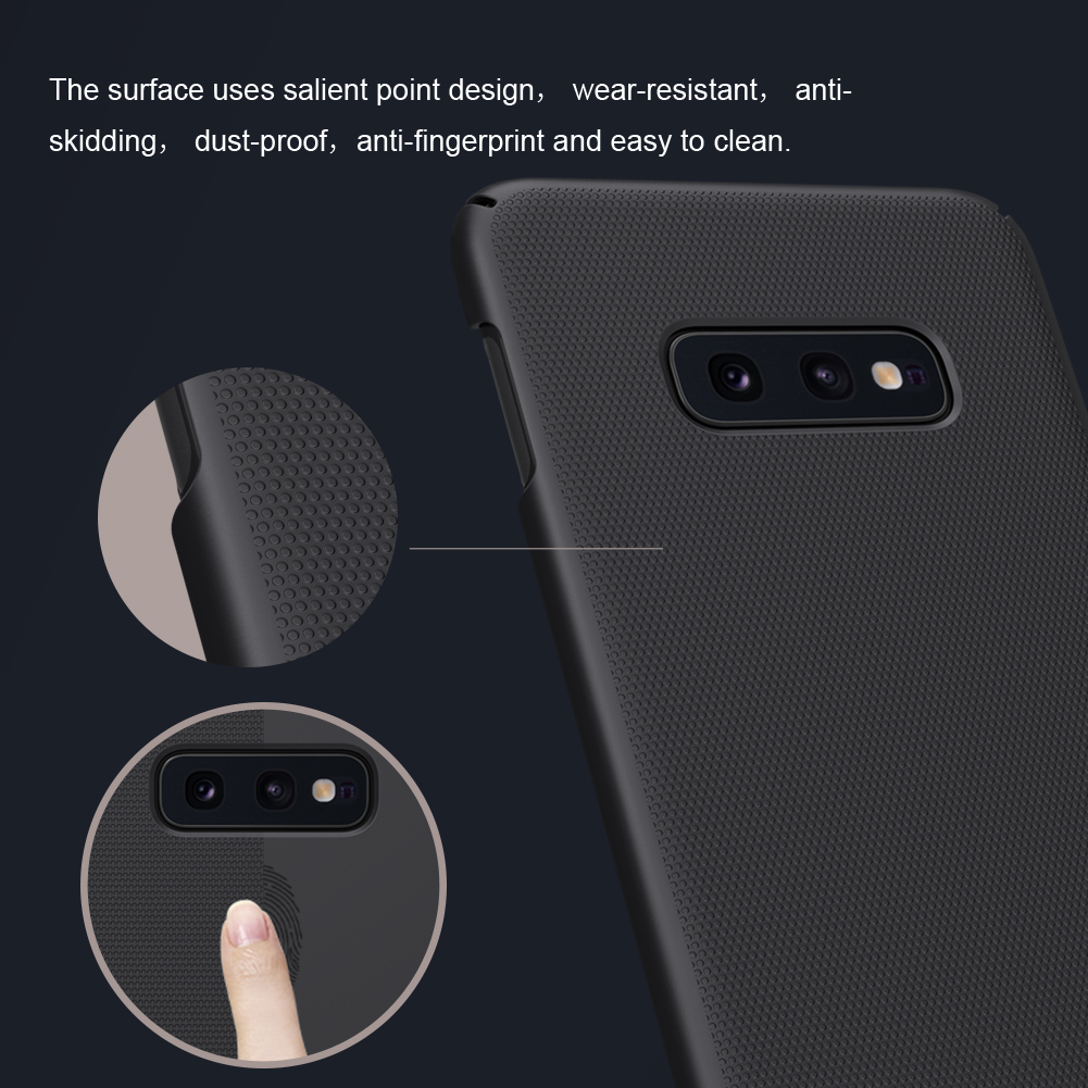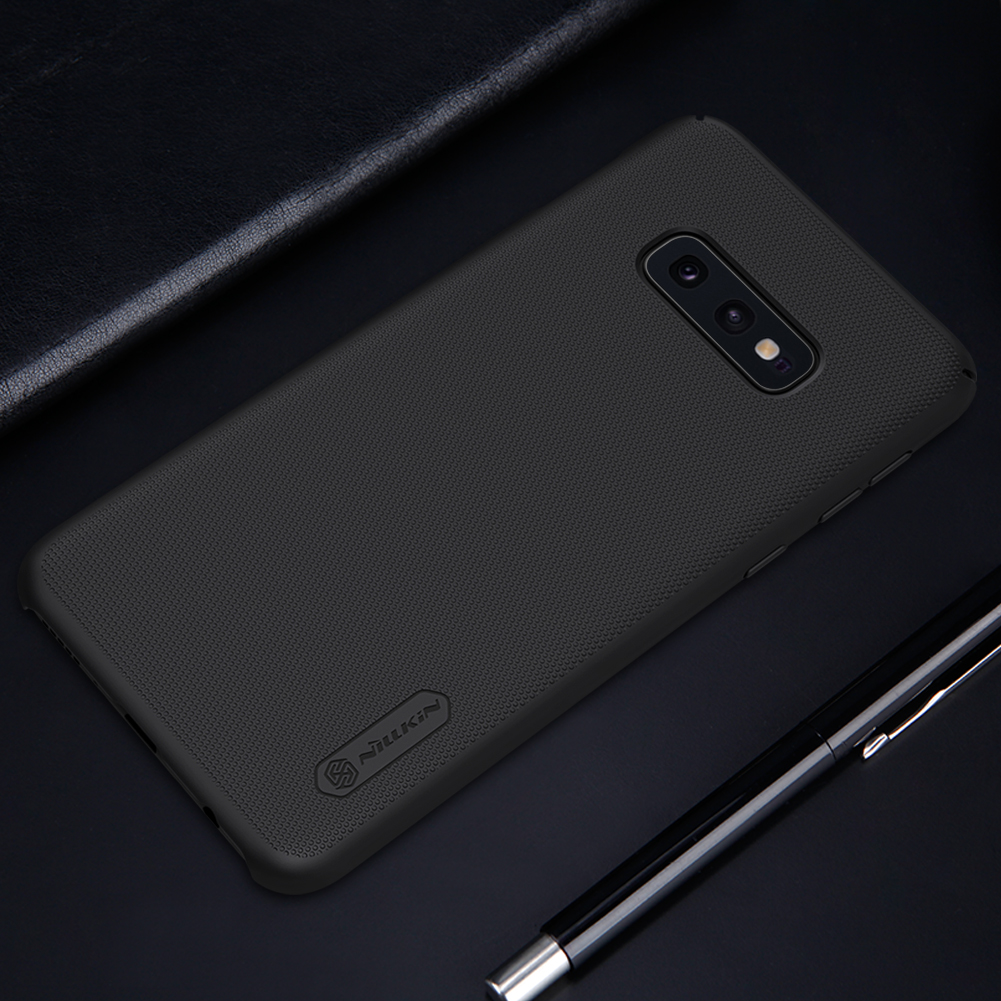 Тонкий чехол черного цвета от Nillkin серии Super Frosted Shield для смартфона Samsung Galaxy S10e изготавливается из экологичных материалов путем высокоточного литья под давление с высокой температурой.
