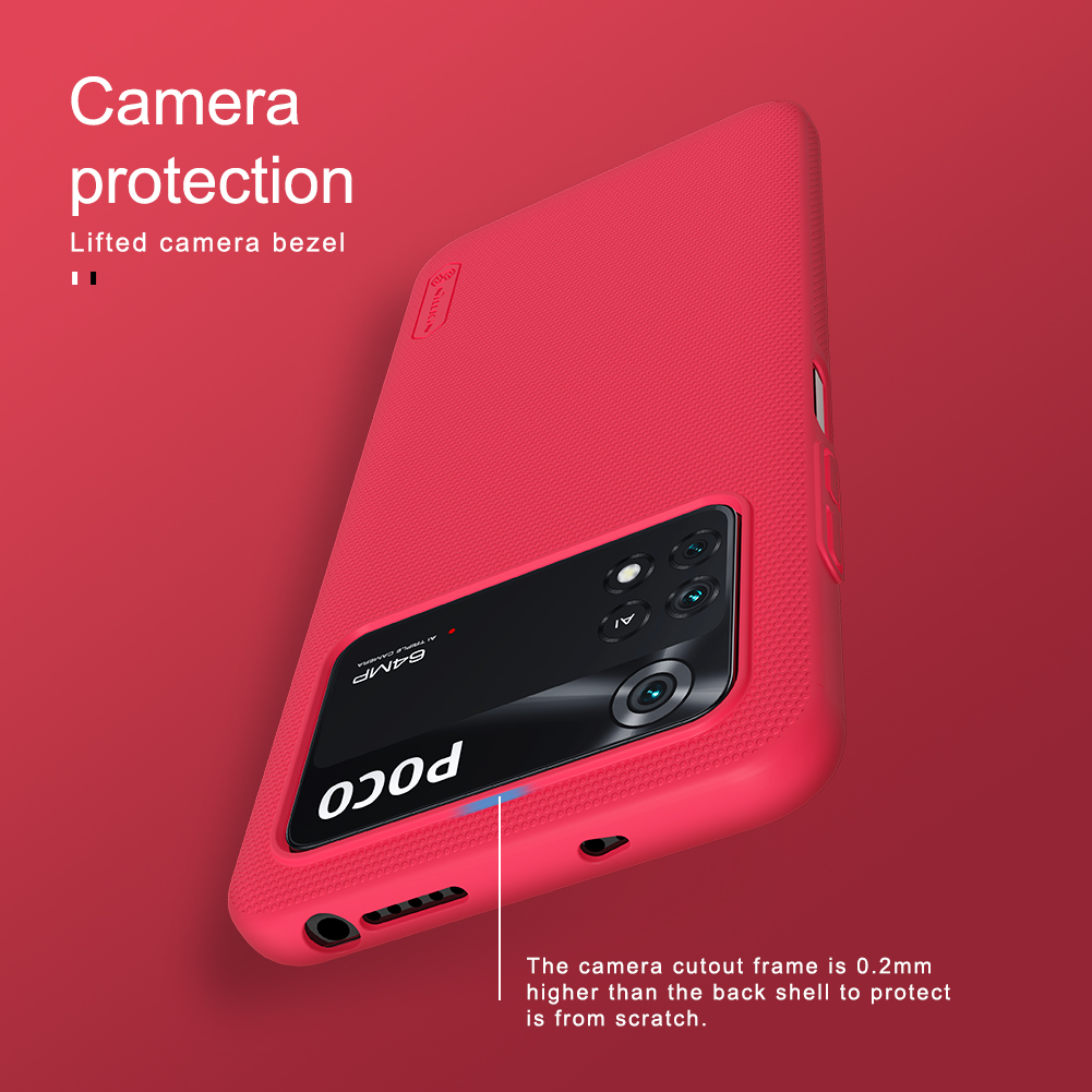 Тонкий чехол красного цвета от Nillkin серии Super Frosted Shield для смартфона Xiaomi Poco M4 Pro 4G изготавливается из экологичных материалов путем высокоточного литья под давление с высокой температурой.