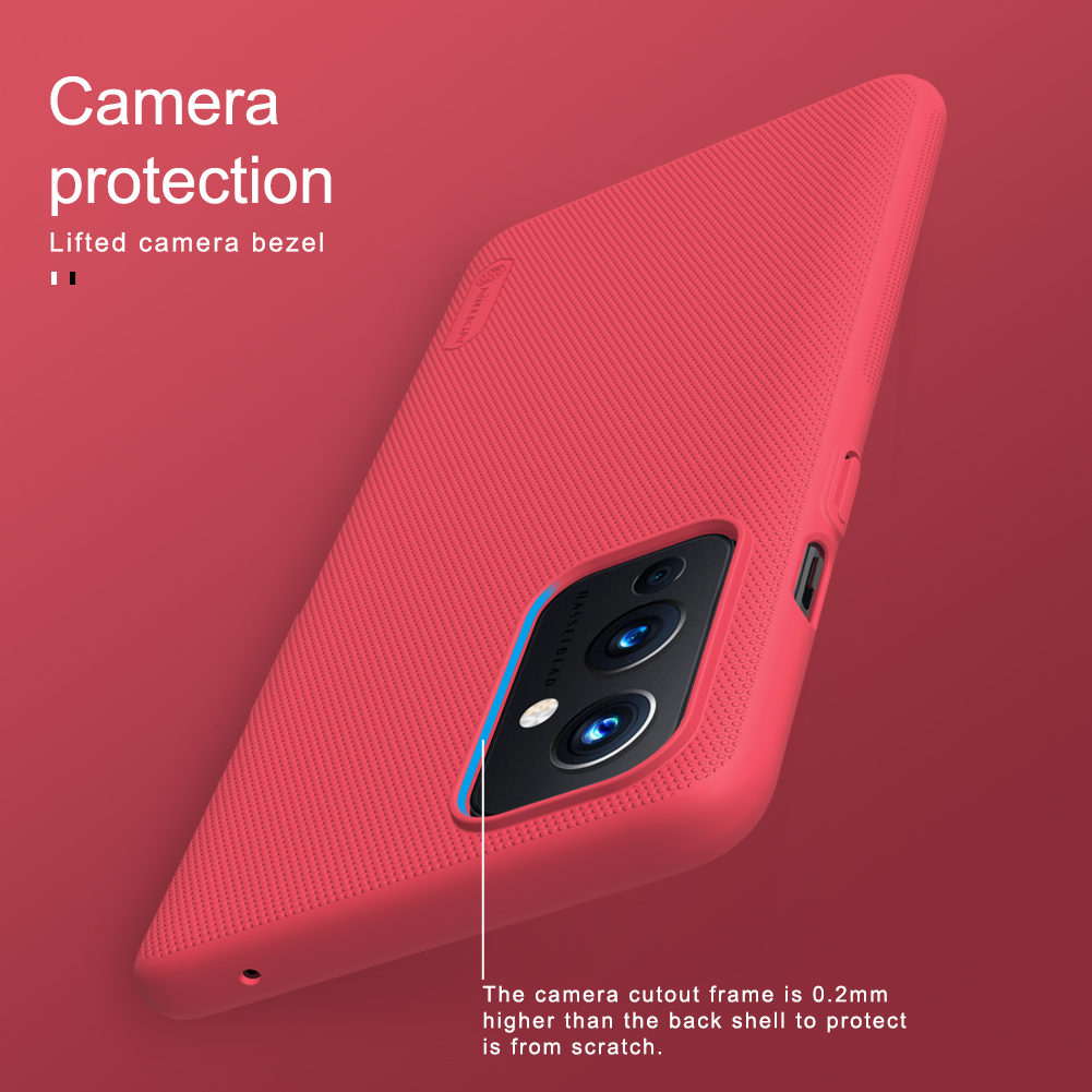 Тонкий чехол красного цвета от Nillkin серии Super Frosted Shield для смартфона OnePlus 9 (рынок EU и NA) изготавливается из экологичных материалов путем высокоточного литья под давление с высокой температурой.