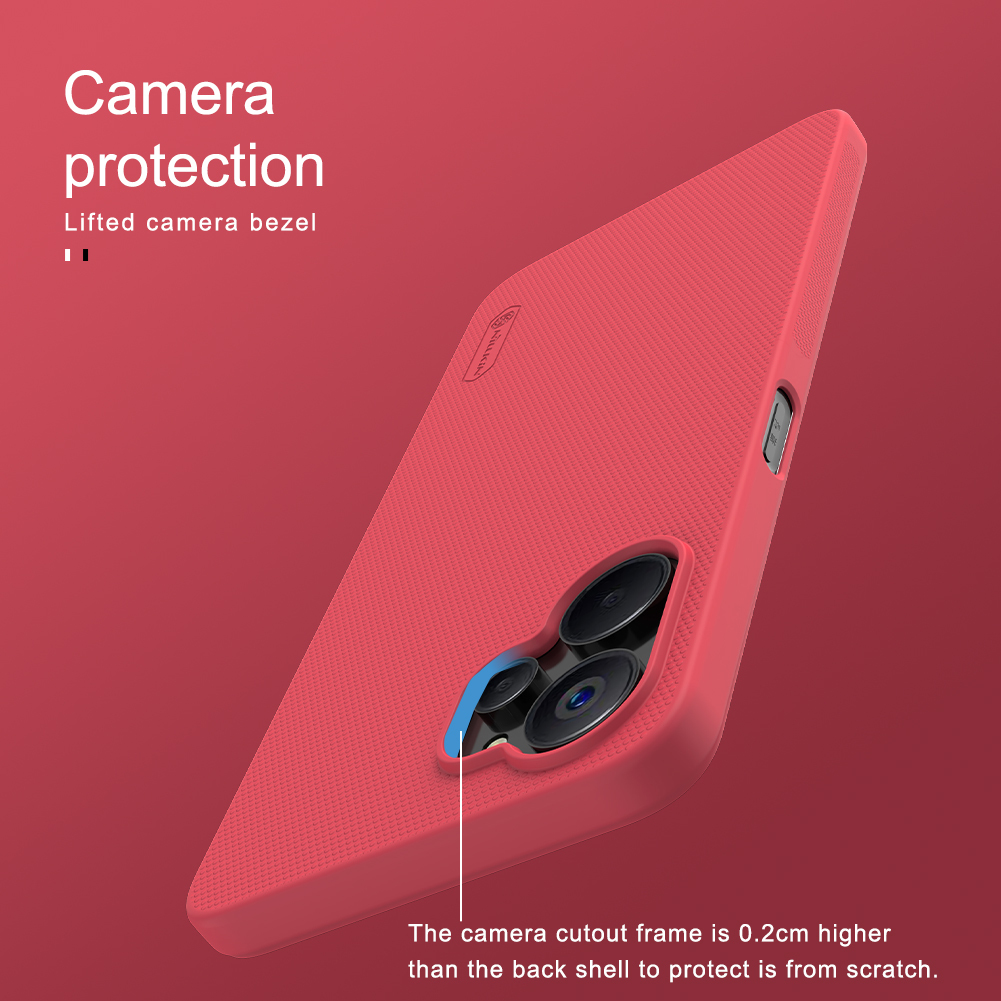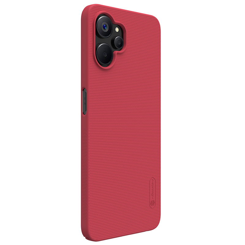 Тонкий чехол красного цвета от Nillkin серии Super Frosted Shield для смартфона Realme 9i 5G, 10 5G и 10T 5G изготавливается из экологичных материалов путем высокоточного литья под давление с высокой температурой.