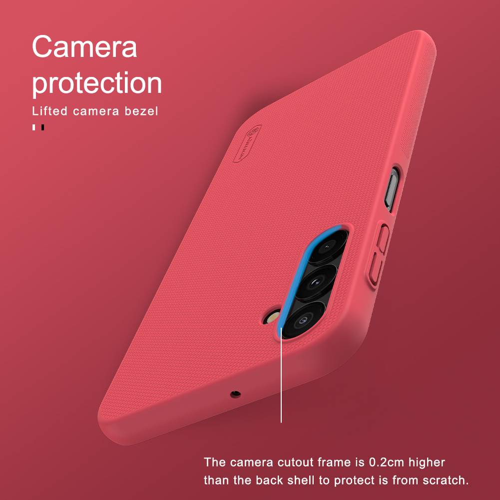 Тонкий чехол красного цвета от Nillkin серии Super Frosted Shield для смартфона Samsung Galaxy A24 4G изготавливается из экологичных материалов путем высокоточного литья под давление с высокой температурой.