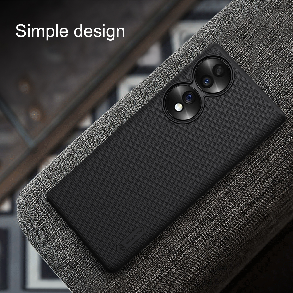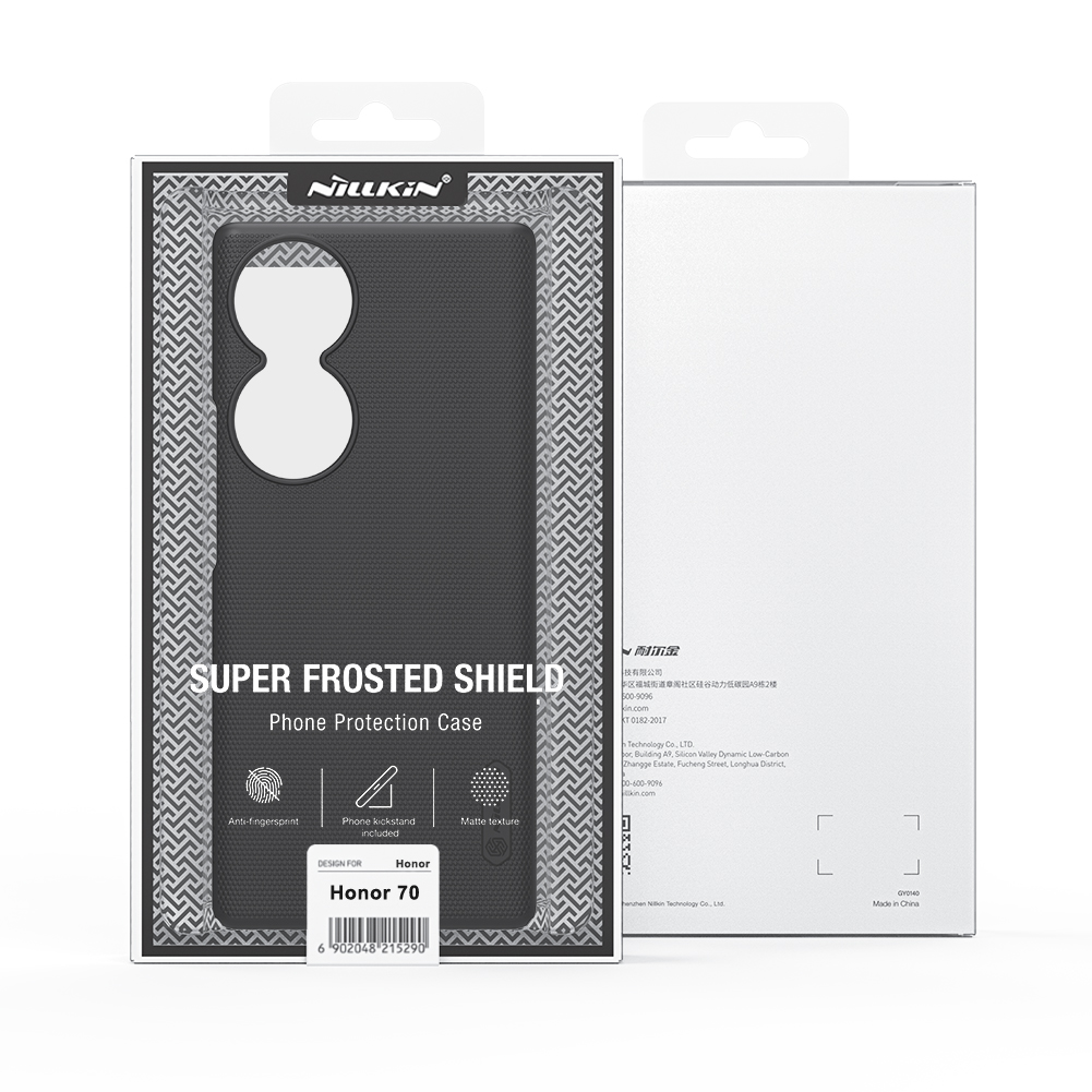 Тонкий чехол черного цвета от Nillkin серии Super Frosted Shield для смартфона Huawei Honor 70 изготавливается из экологичных материалов путем высокоточного литья под давление с высокой температурой.