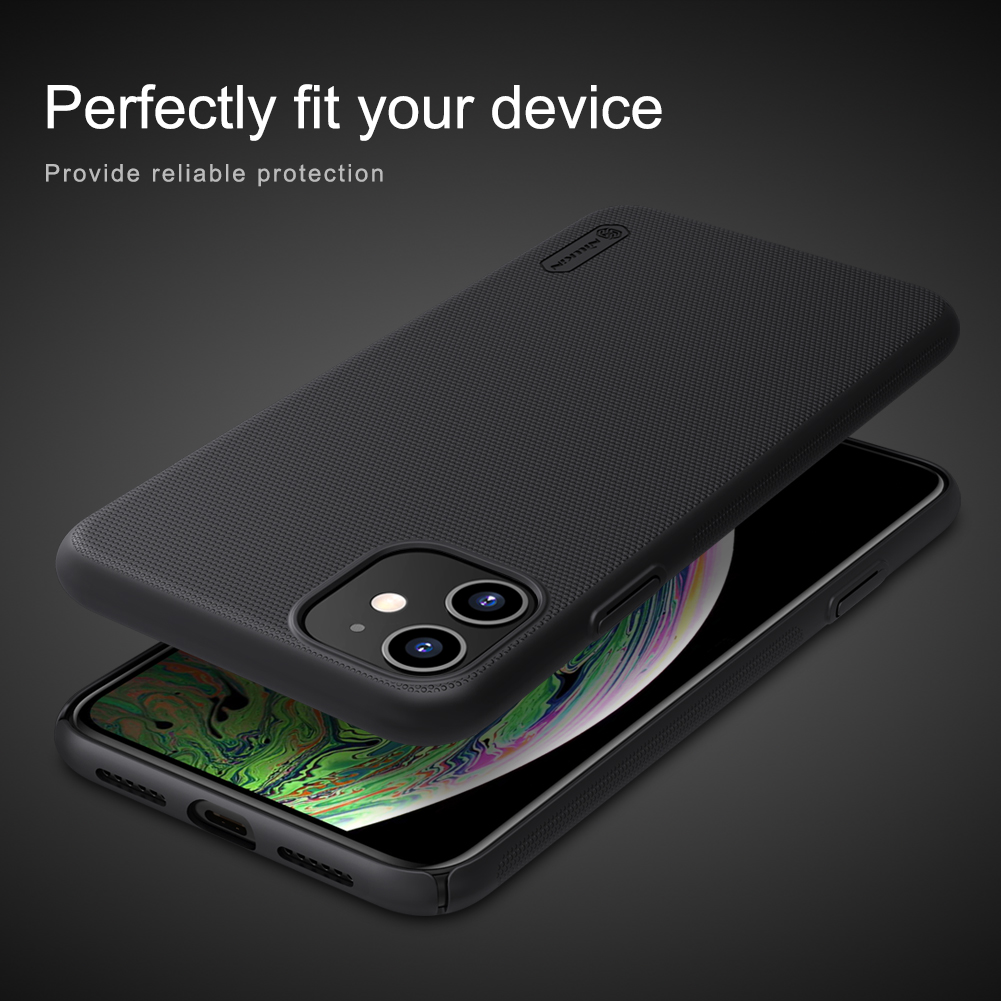 Тонкий жесткий чехол черного цвета от Nillkin серии Super Frosted Shield для смартфона iPhone 11 изготавливается из экологичных материалов путем высокоточного литья под давление с высокой температурой.