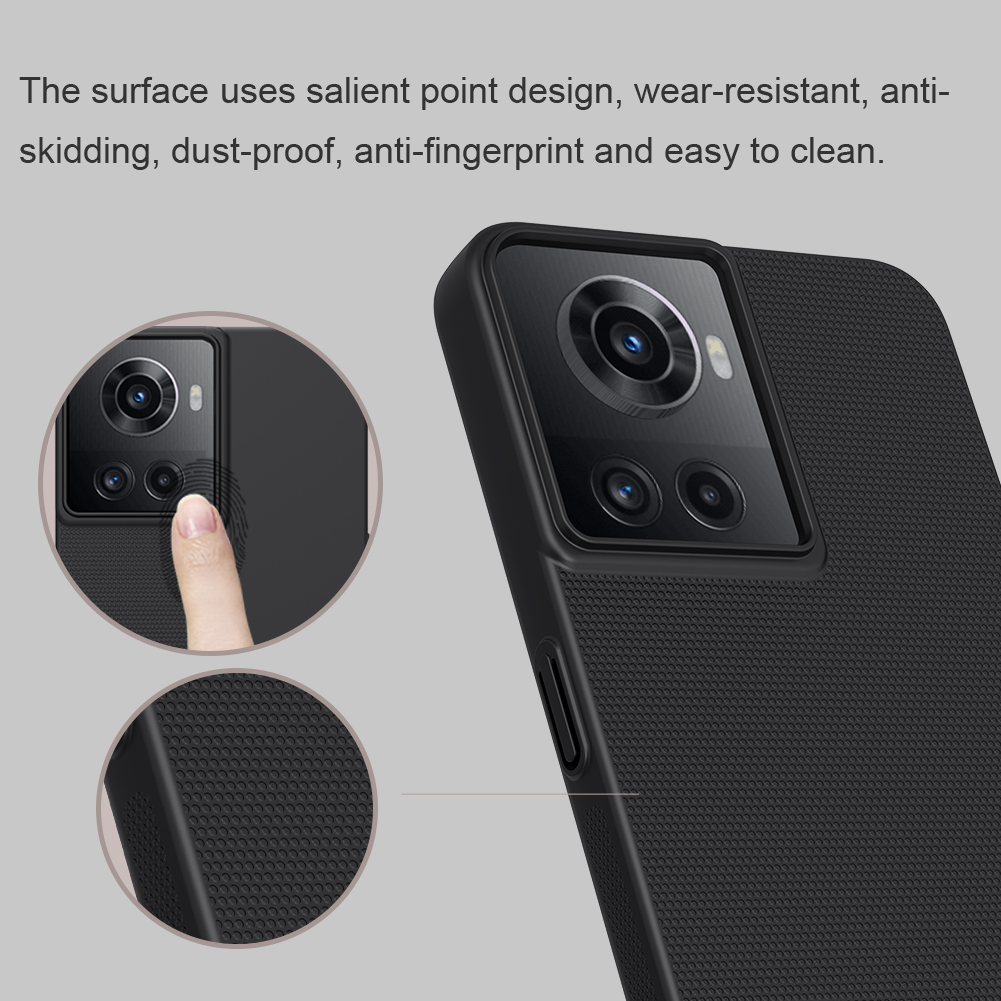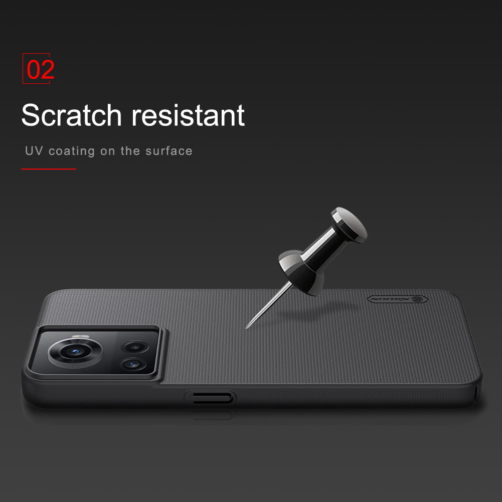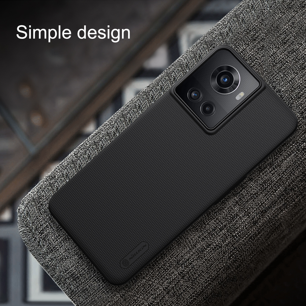Тонкий чехол черного цвета от Nillkin серии Super Frosted Shield для смартфона OnePlus Ace 5G и 10R 5G изготавливается из экологичных материалов путем высокоточного литья под давление с высокой температурой.