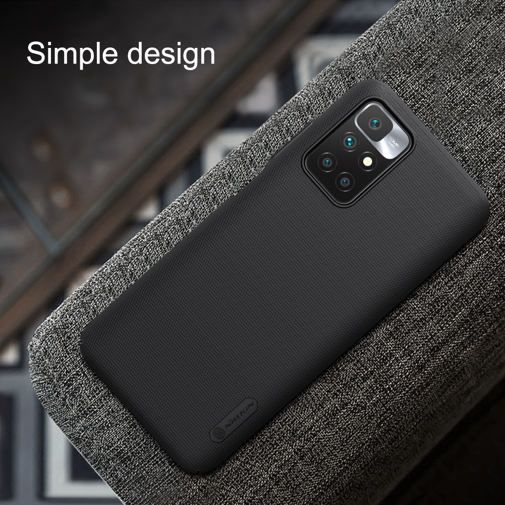 Тонкий чехол черного цвета от Nillkin серии Super Frosted Shield для смартфона Xiaomi Redmi 10 и 10 Prime изготавливается из экологичных материалов путем высокоточного литья под давление с высокой температурой.