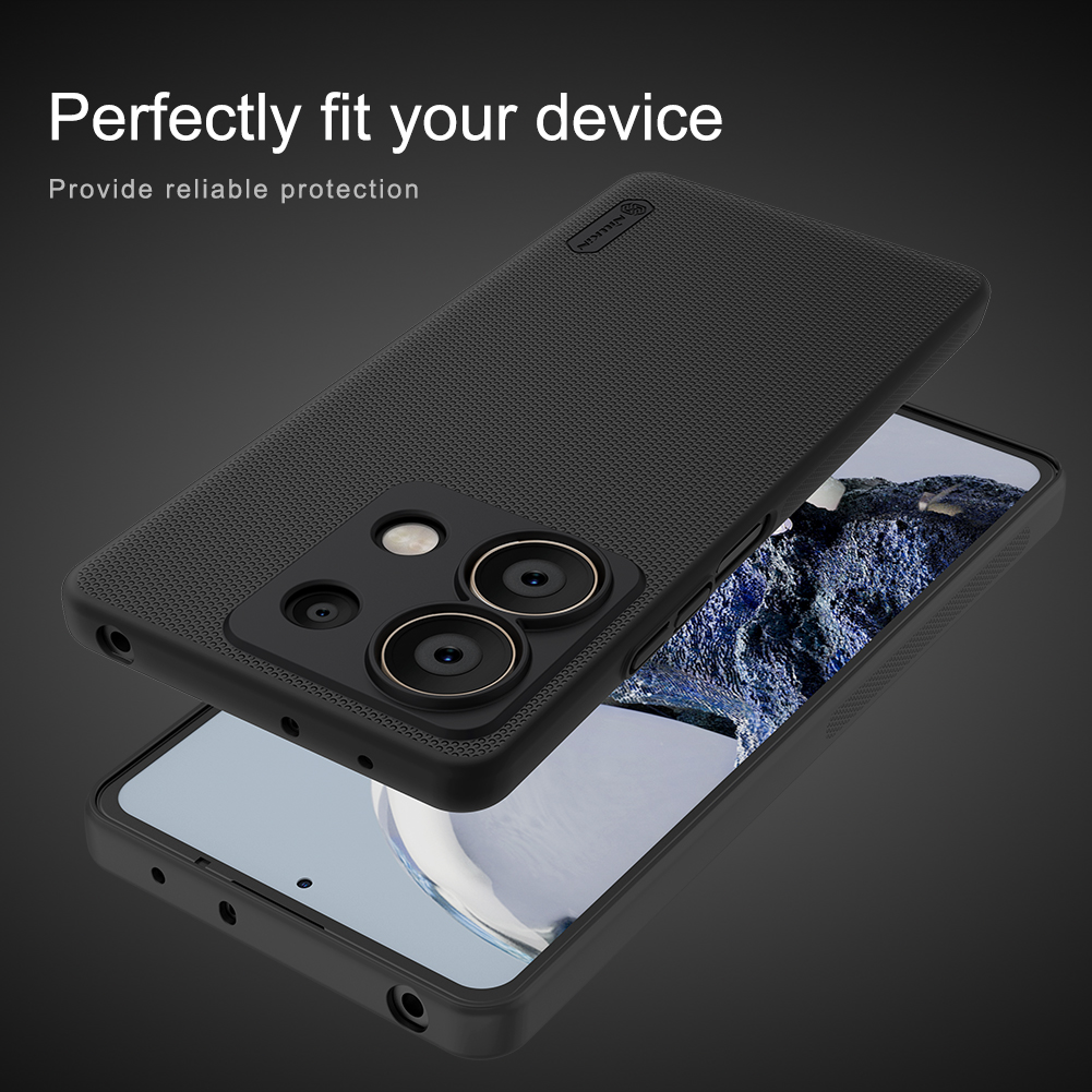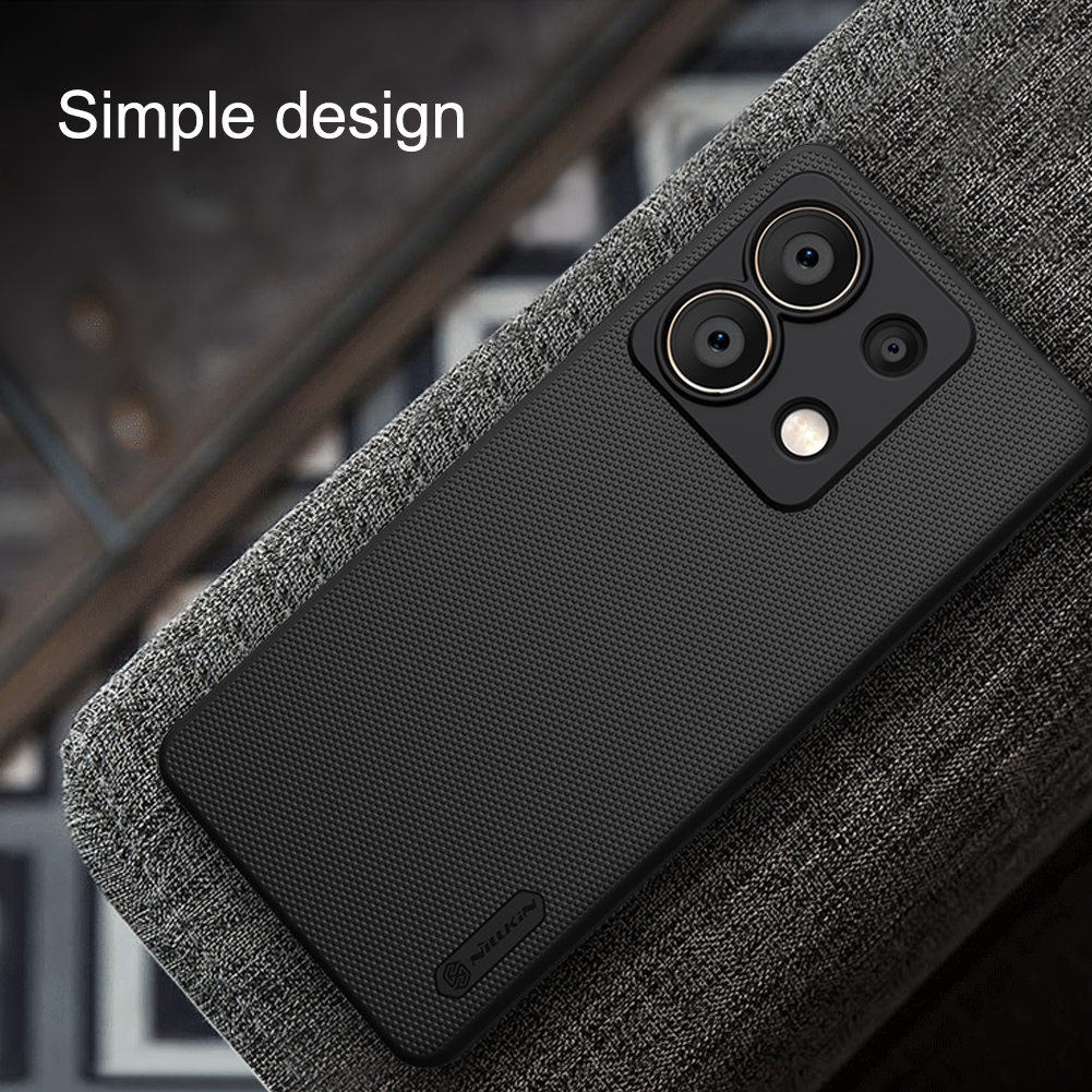 Тонкий чехол черного цвета от Nillkin серии Super Frosted Shield для смартфона Xiaomi Redmi Note 13 5G изготавливается из экологичных материалов путем высокоточного литья под давление с высокой температурой.