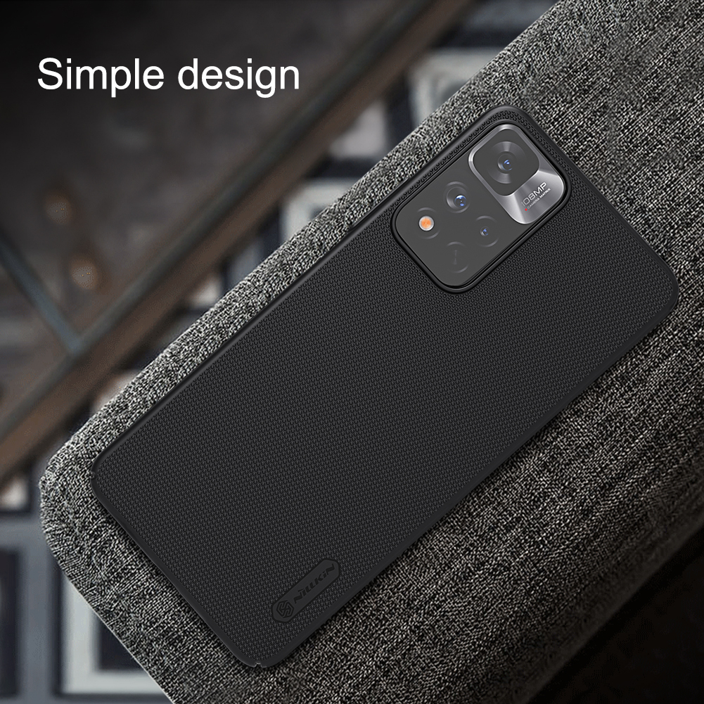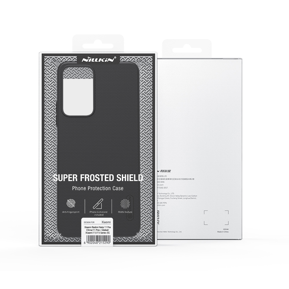 Тонкий чехол черного цвета от Nillkin серии Super Frosted Shield для смартфона Xiaomi Redmi Note 11 Pro (Китай), 11 Pro+ 5G и Xiaomi 11i (India) изготавливается из экологичных материалов путем высокоточного литья под давление с высокой температурой.