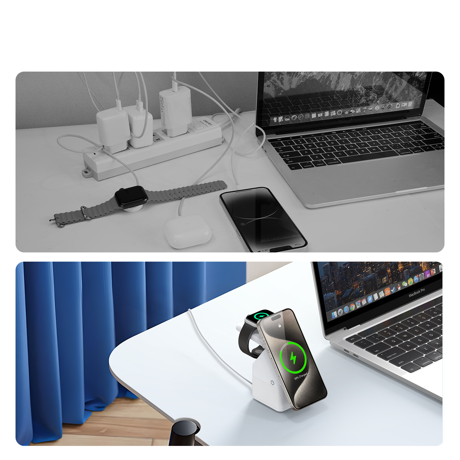 Универсальное магнитное беспроводное зарядное устройство-ночник 4в1, House-shaped Magnetic 15W, Duzzona. Можно использовать одновременно как ночник с магнитной зарядкой часов, смартфона, наушников AirPods.