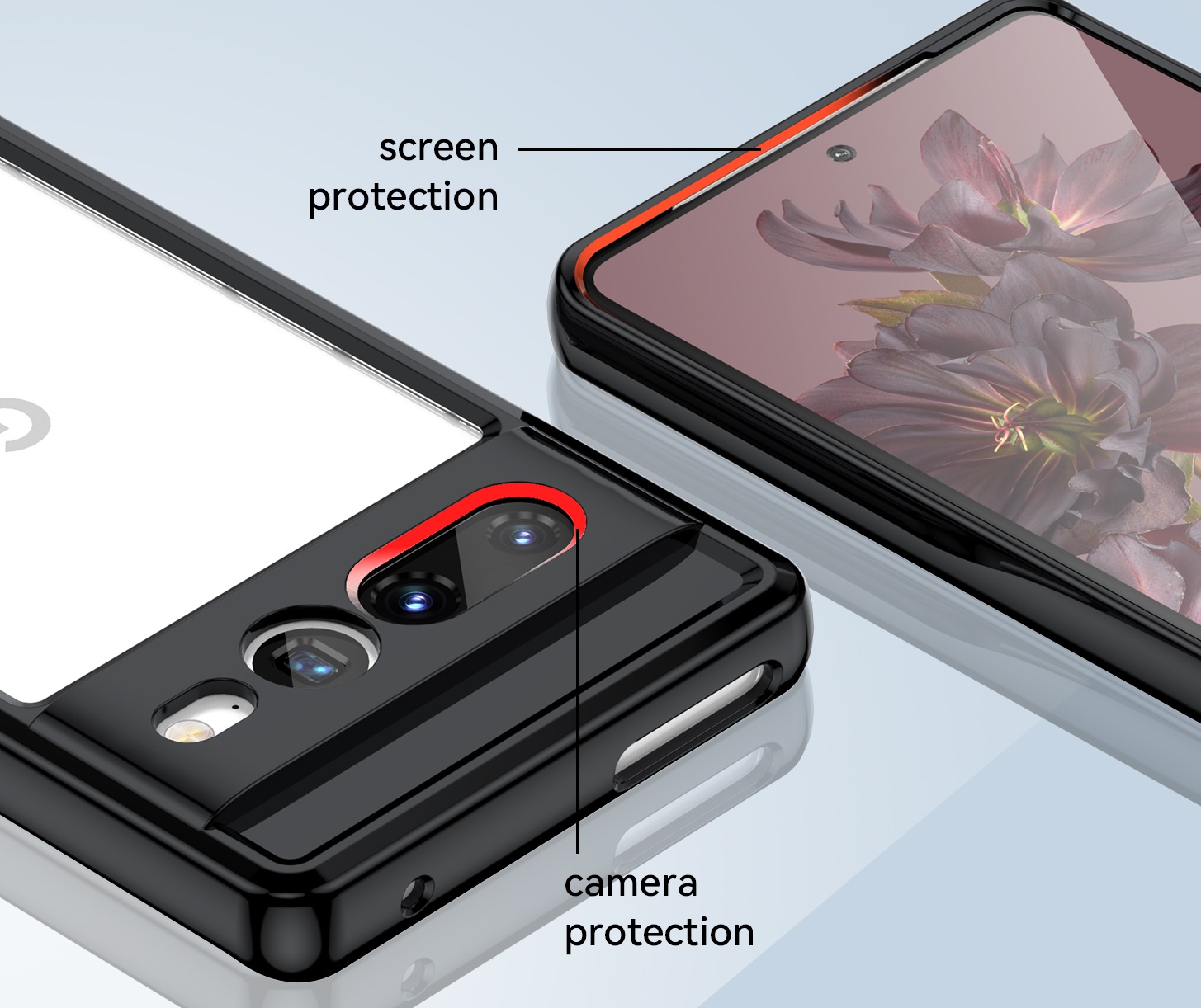 Защитный, противоударный чехол с усиленными боковыми рамками черного цвета для дисплея на телефон Google Pixel 7 Pro от Caseport, серия Fusion