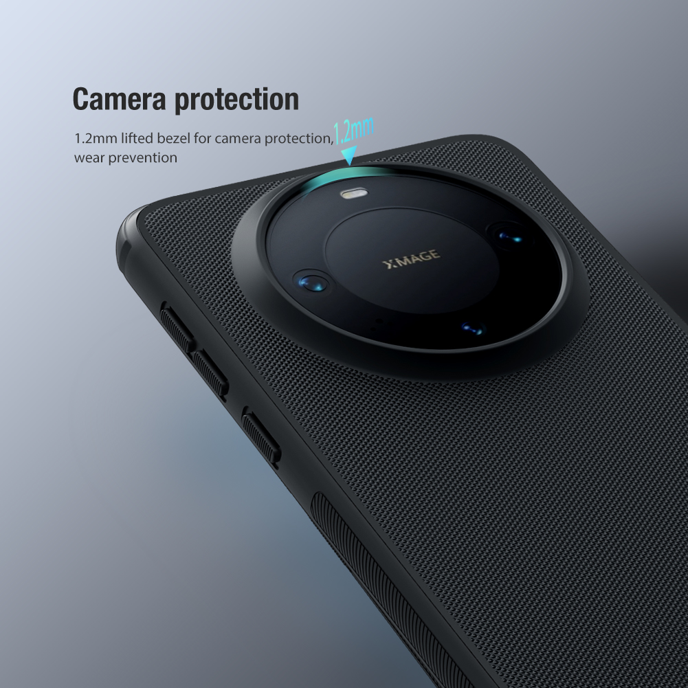 Защитный чехол черного цвета от Nillkin серии Super Frosted Shield Pro для смартфона Huawei Mate 60 с усиленными боковыми рамками по четырем углам, изготавливается из экологичных материалов PC и TPU путем высокоточного литья под давление с высокой температурой.