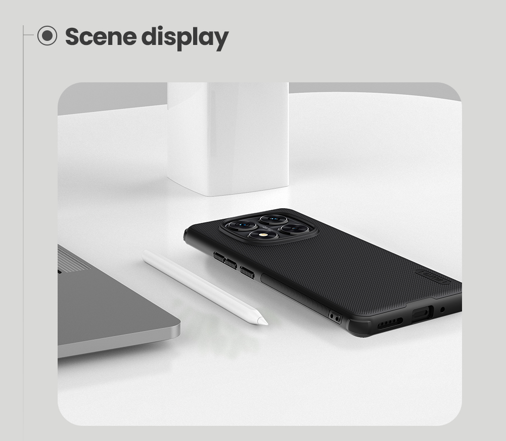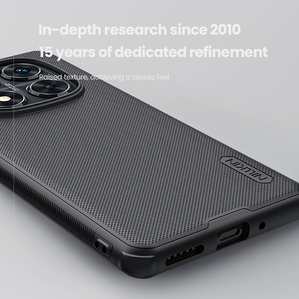 Защитный чехол черного цвета от Nillkin серии Super Frosted Shield для смартфона Xiaomi Redmi Note 14 Pro 5G и Mi Poco X7 5G с усиленными боковыми рамками по четырем углам, изготавливается из экологичных материалов PC и TPU путем высокоточного литья под давление с высокой температурой.