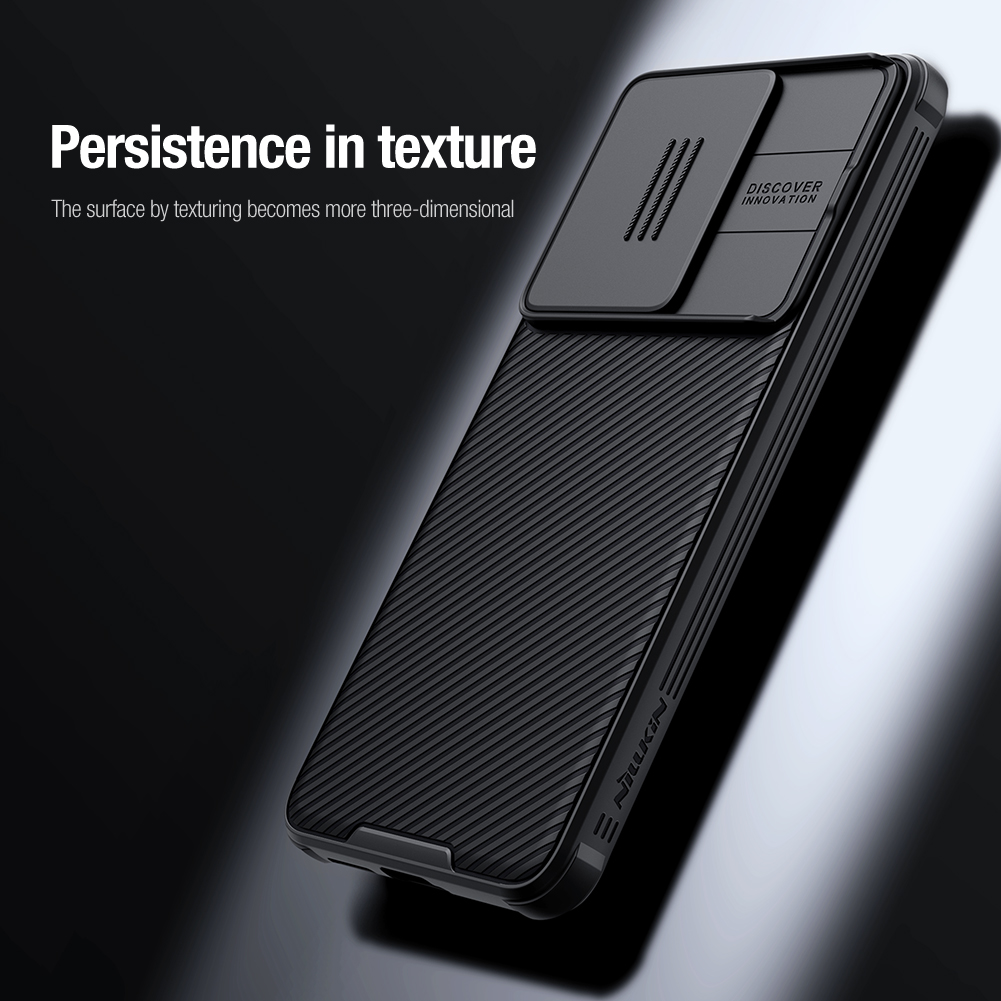 Противоударный чехол черного цвета с защитной шторкой задней камеры от Nillkin серии CamShield Pro Case для телефона Xiaomi Redmi Turbo 3 и Poco F6 создан для любителей активного отдыха.