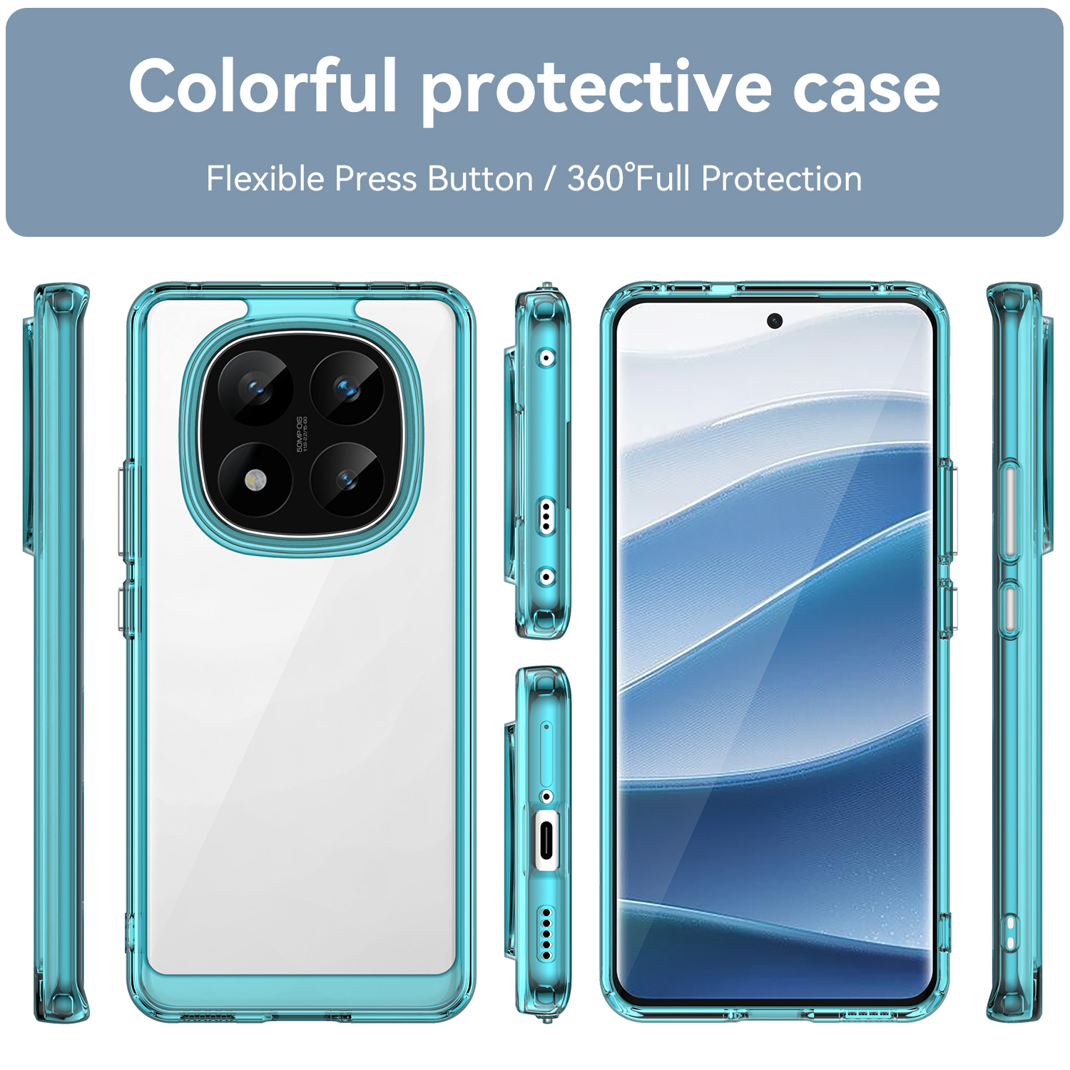 Защитный, противоударный чехол с усиленными боковыми рамками бирюзового цвета для дисплея на телефон Xiaomi Redmi Note 14 Pro+ от Caseport, серия Fusion